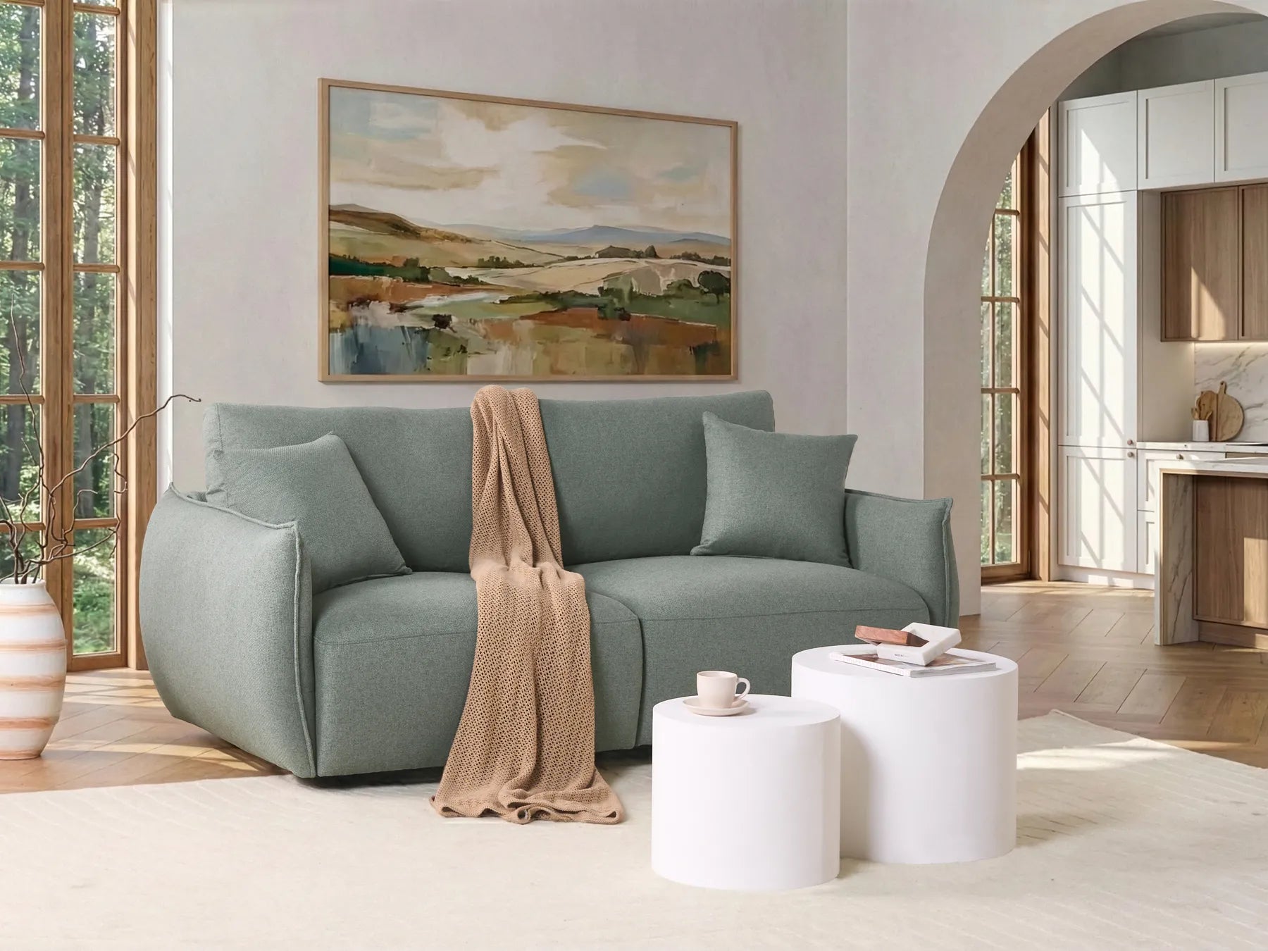 Modular Sofa 2 Seater Fabric Green Leiani