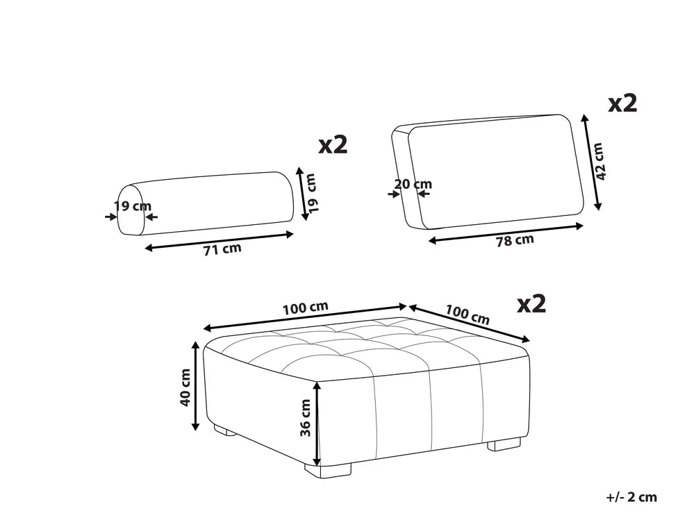 Cushions: 78 x 42 x 20 / 71 x 19 x 19 cm