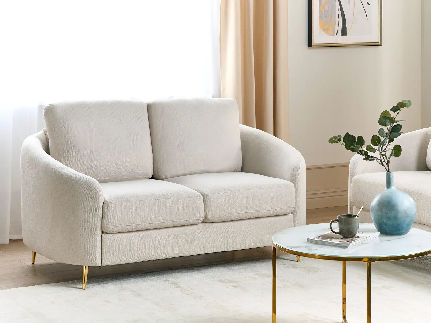 1 X 2-er sofa light beige fabric, 1/2, SF (27.0 kg) 114.00 x 87.00 x 37.00 cm (L x W x H)