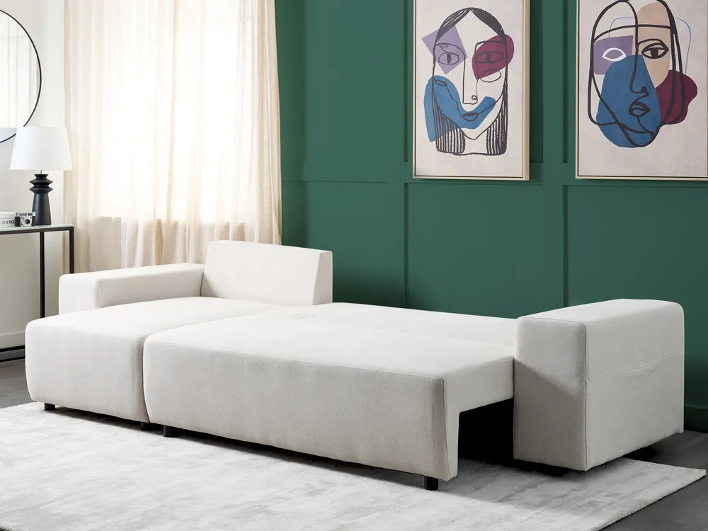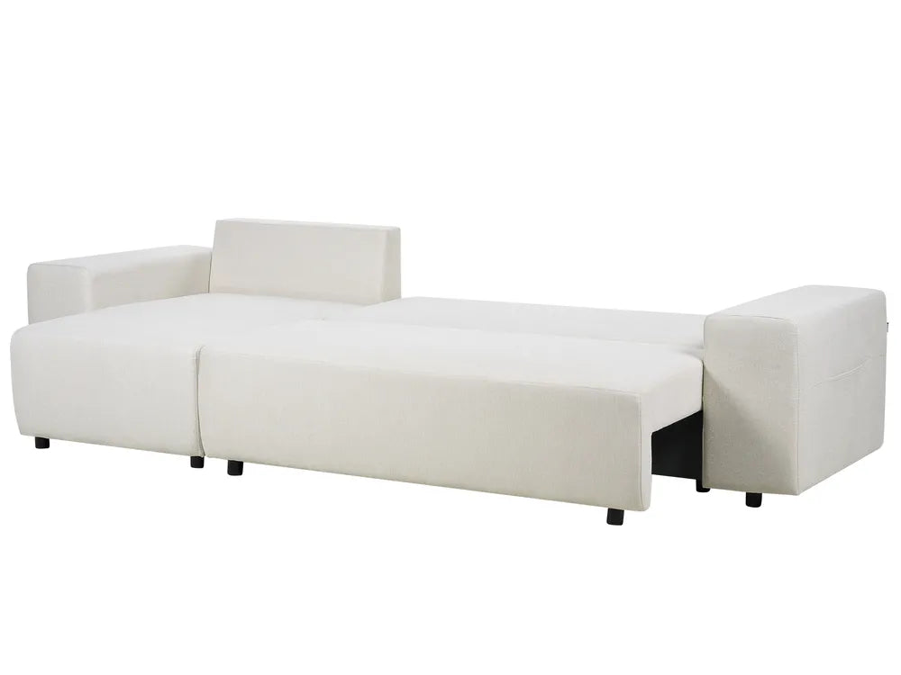 Corner Sofa Bed 3 Seater Fabric Light Beige with Storage Right Hand Vardie