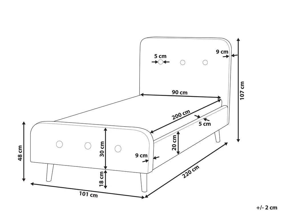1 X Bed beige 90x200 Carton 2/3 (9.0 kg) 107.00 x 34.00 x 15.50 cm (L x W x H)