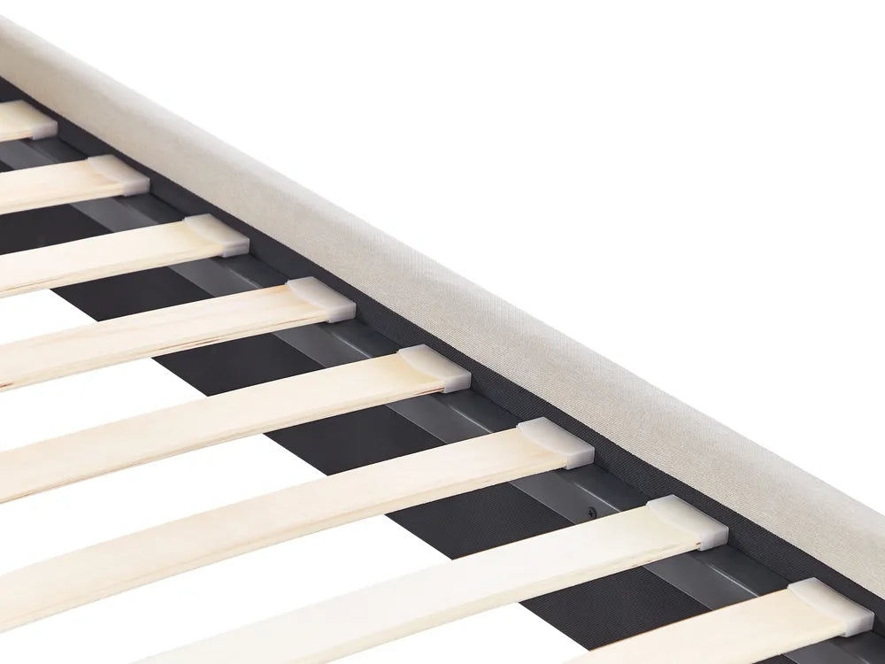 This high-quality bed gives you a comfortable feel and guarantees sound sleep. It is covered with linen fabric in a warm beige colour which goes well with the wooden, stable legs. The chic shape will add a touch of style to your interior. The buttoned headboard and footboard complete its magnificent design. It is a perfect bed for those who value functionality, modern design, precision and quality.