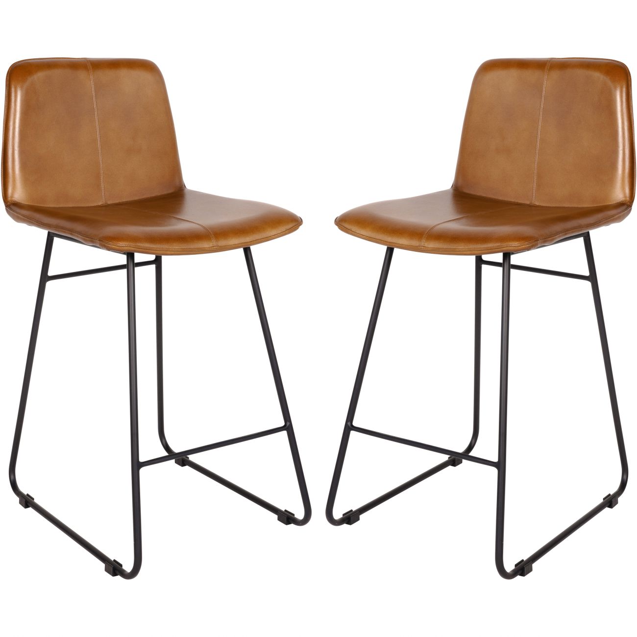 Libra Pair of Robinson Leather Bar Stools in Cognac