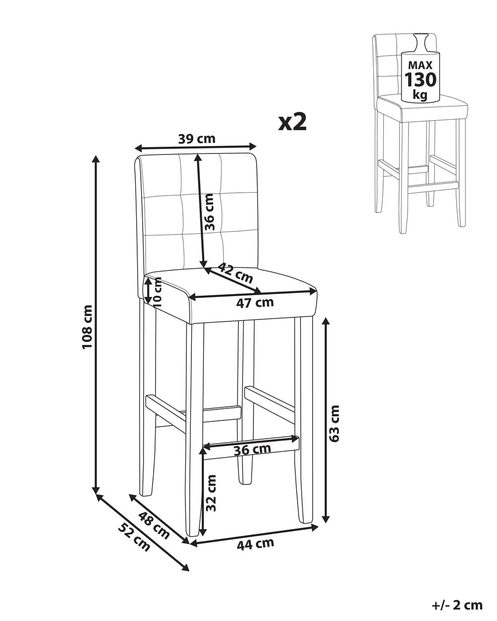 Set of 2 Bar Chairs Grey High-Quality Upholstery Cevoro