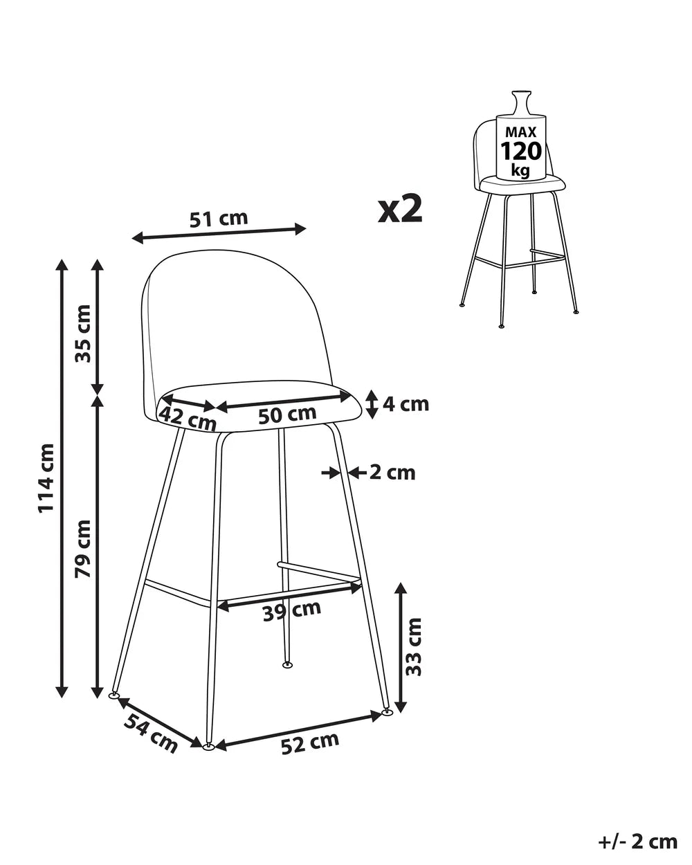 Seating Surface: 50 x 42 cm