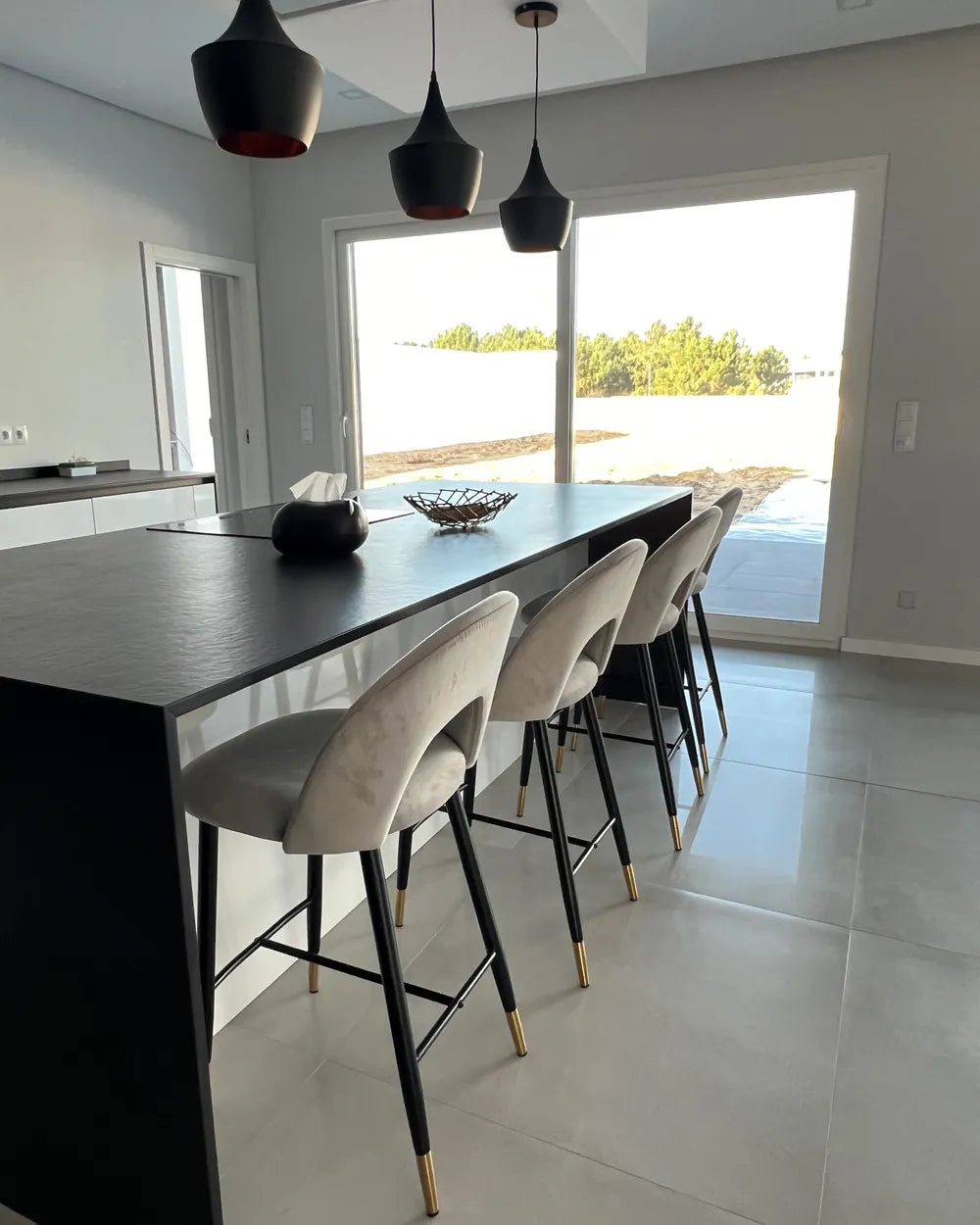 These chairs are the result of a perfect mixture of retro and modern. The velvet upholstery is highly-aesthetic and easy to maintain at the same time, and the steel legs with golden accents evoke the best characteristics of the 60s and 70s design. Add some shape and interesting colour to your kitchen area, or create an elevated dining spot in the living room.