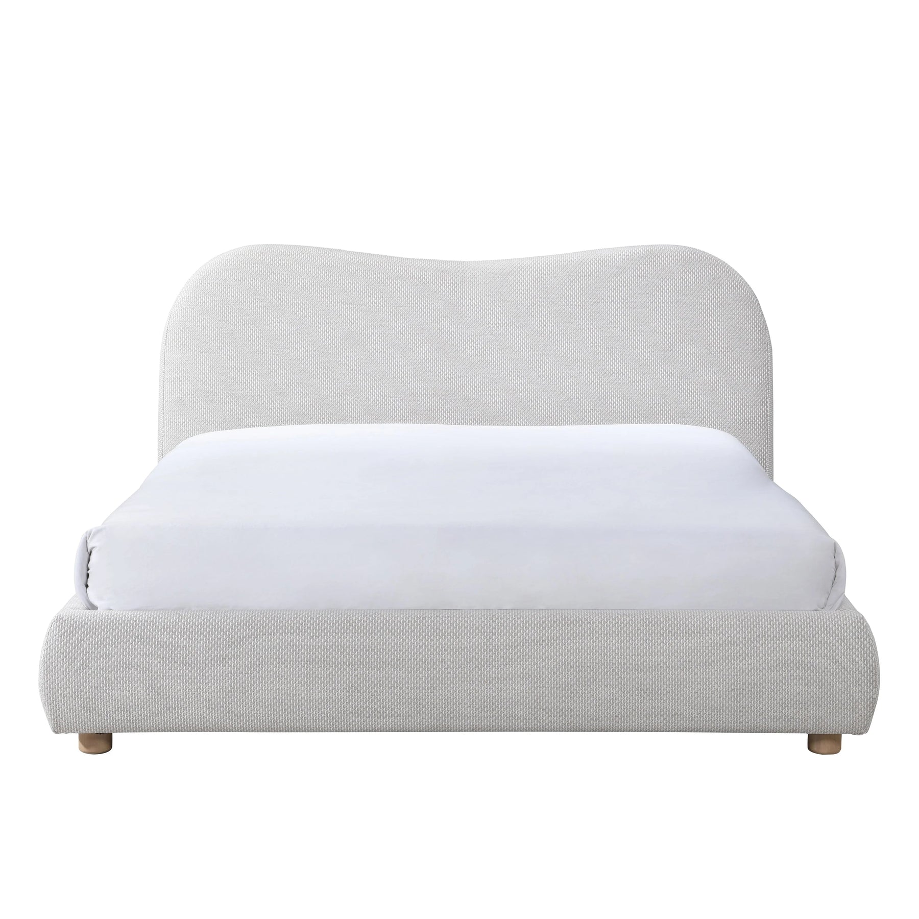 The Wave Bed showcases a softly curved silhouette, upholstered in a stylish natural weave fabric that brings warmth and texture to the bedroom.