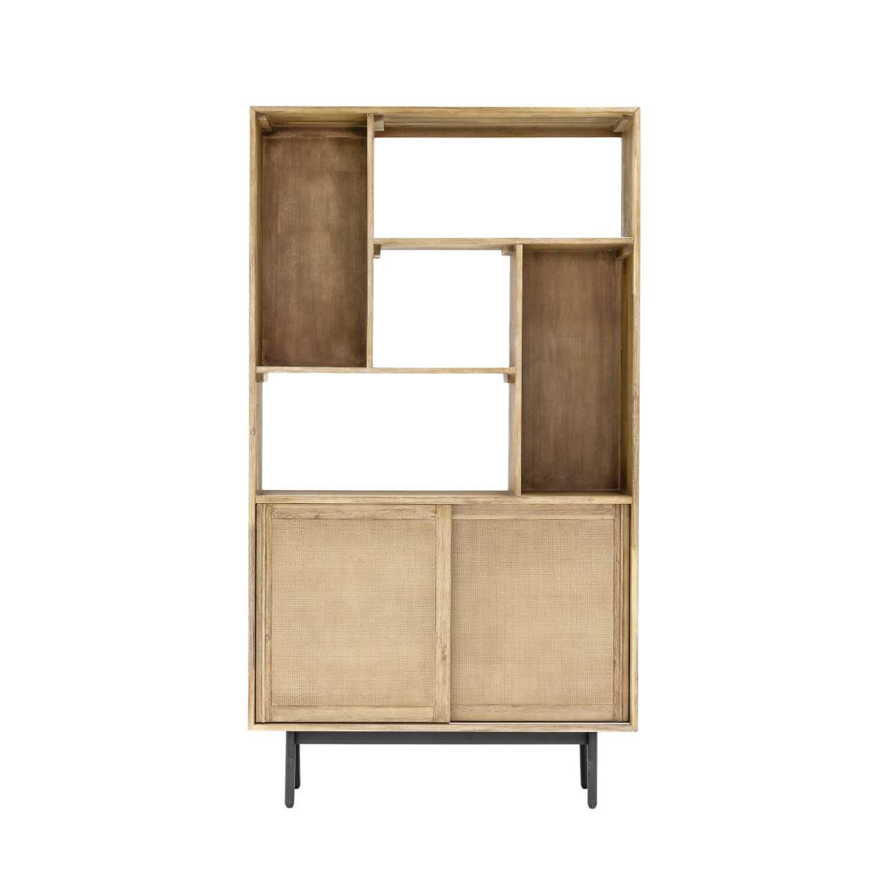 Expertly crafted from high-quality acacia wood, the bookcase is designed for durability and everyday use. The natural wood finish highlights the grain, while rattan fibre detailing on the sliding doors adds subtle texture and visual interest.