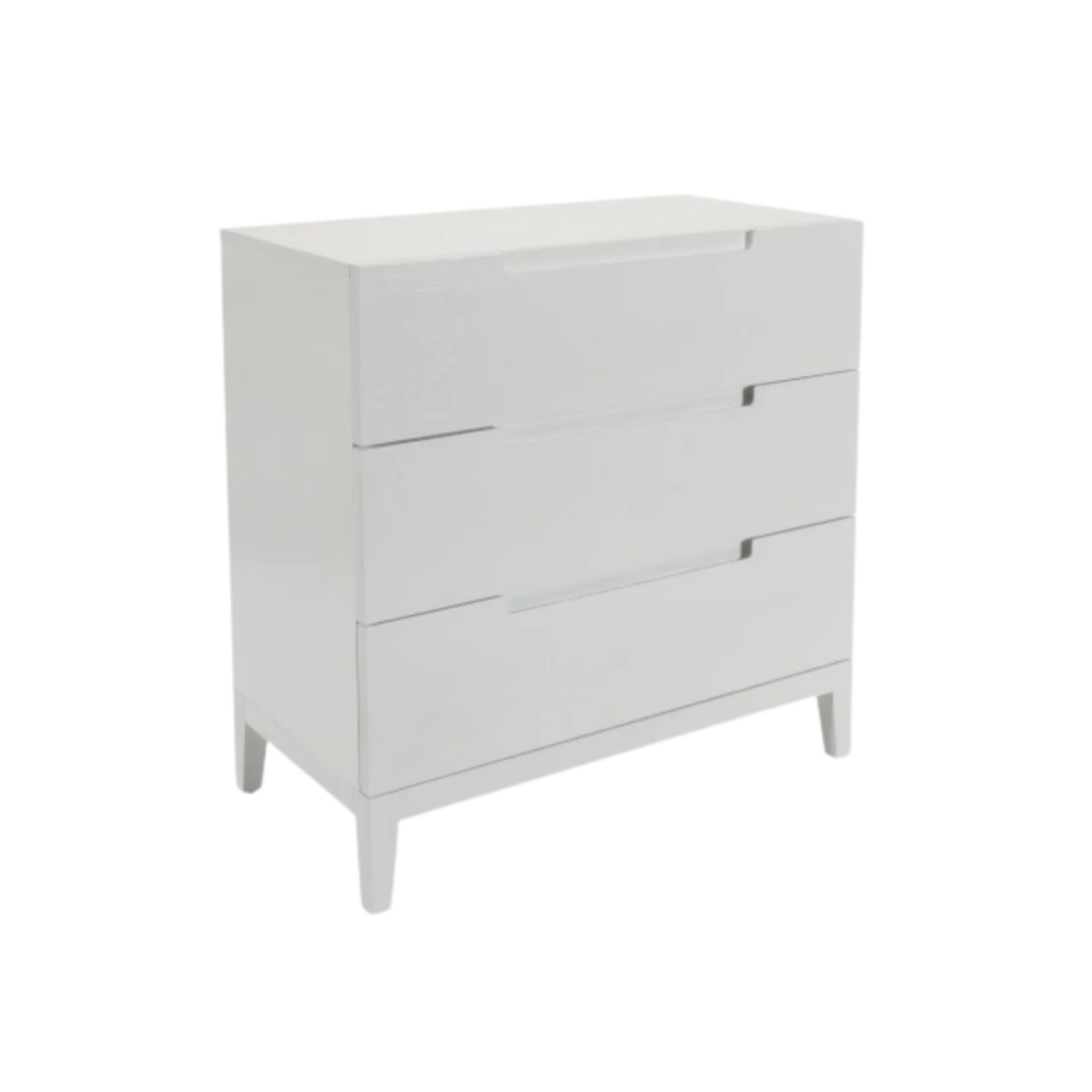 The cool white colour and sleek surfaces create a calm, discreet, yet robust presence, and the generously sized and smooth-running drawers give ample storage space. Attractively simple and wonderfully functional.