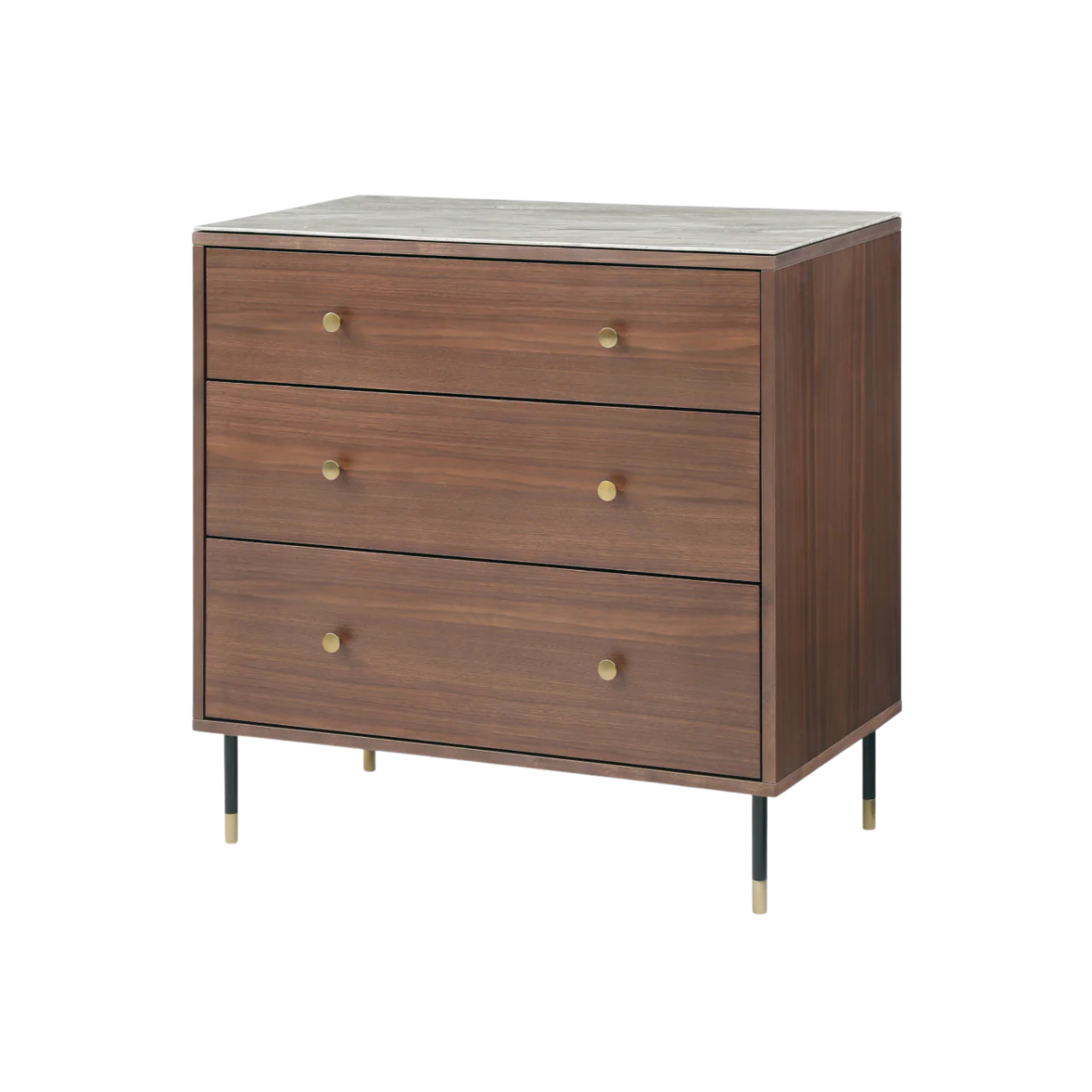 Willow Walnut Brown Wood & Grey Marble Chest of Drawers
