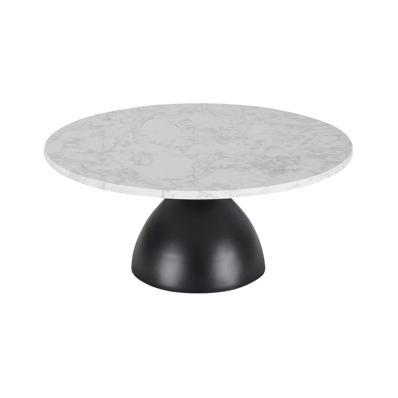 Introduce a touch of modern elegance to your living room with the Hazel Coffee Table. Its round white artificial marble top sits atop a sleek black iron column base, creating a clean and contemporary aesthetic that complements both minimalist and transitional interiors. The durable marble surface resists staining and scratching, making it practical for everyday use whilst maintaining its sophisticated appearance. The sturdy iron pedestal provides excellent stability and weight distribution, ensuring longevity. This versatile piece works beautifully as a focal point in living spaces, home offices, or commercial settings, making it an ideal choice for interior designers, showrooms, and homeowners seeking functional luxury. The neutral colour palette allows it to coordinate seamlessly with existing décor whilst adding visual interest through its distinctive material contrast.