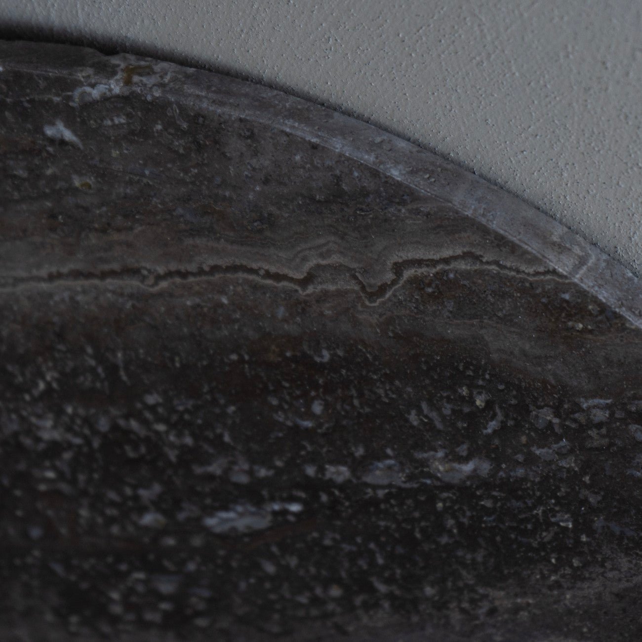 The Clifton II Small Coffee Table is characterised by a round dark travertine top and a gently tapered charcoal base. With its compact proportions, it works beautifully as a standalone side table or as part of a nested arrangement.