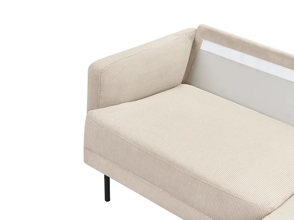 Embrace the essence of modern living with this outstanding left-hand corner sofa. Upholstered in luxurious comfort and supported by sleek black metal legs, it's a minimalistic masterpiece. The product can seat up to 2 people, so you can relax with your loved one in comfort. Elevate your space and revel in the perfect blend of form and function.