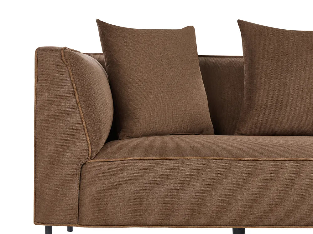 Bring ultimate comfort to your living area with this elegant corner sofa. Upholstered in high-quality, water-repellent fabric and supported by sturdy metal legs, it combines lasting durability with style. Designed for true relaxation, it comes with four scatter cushions that enhance its visual appeal while offering extra softness for everyday convenience.