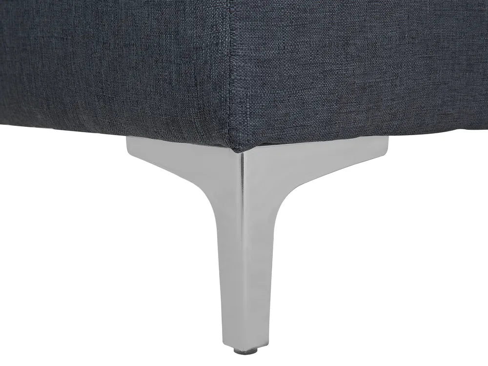This large corner sofa is an ideal anchor piece for your living room, inviting and homely. Versatile in design, the sofa can be turned into a comfortable bed for two thanks to the adjustable backrest. Additionally, the chaise can be positioned on either side to suit your needs. Fully upholstered in high-quality dark grey fabric with elegant tufting, this corner sofa offers both functionality and timeless style that will highlight the best of any modern home. The whole piece is kept stable thanks to metal legs.