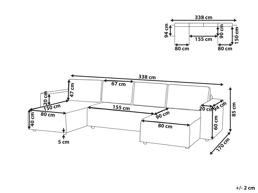 This U-shaped sofa effortlessly blends style and comfort, upholstered in durable, easy-to-clean, and water-repellent fabric. With built-in storage and ample seating for four, it offers both functionality and space to relax. Its sleek, versatile design suits any interior, particularly modern and minimalist styles, making it a smart addition to your home. Plus, it can be easily converted into a bed, adding even more versatility for guests or extra relaxation.