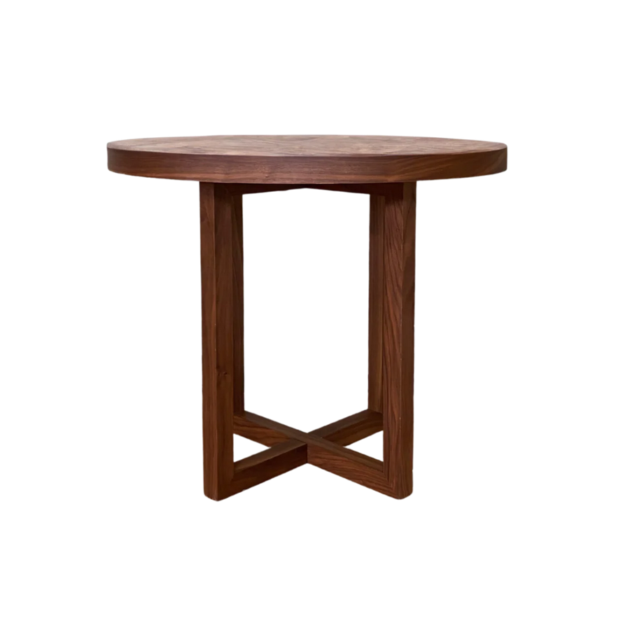 Willow Walnut Brown Wood & Grey Marble Round Dining Table