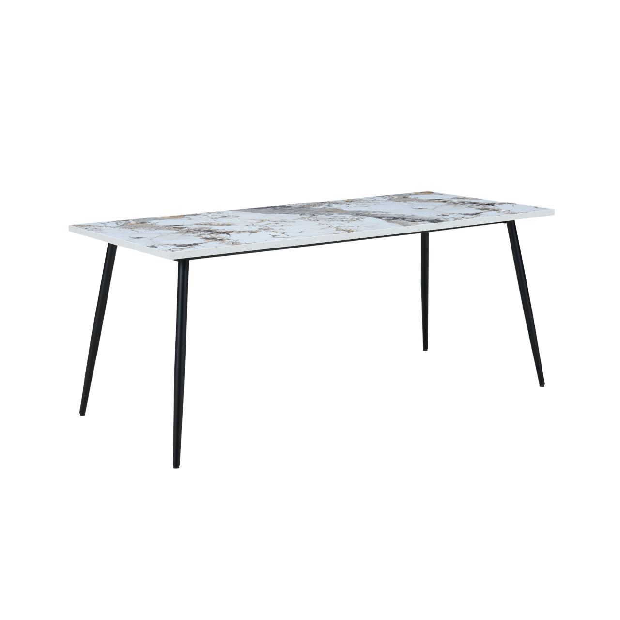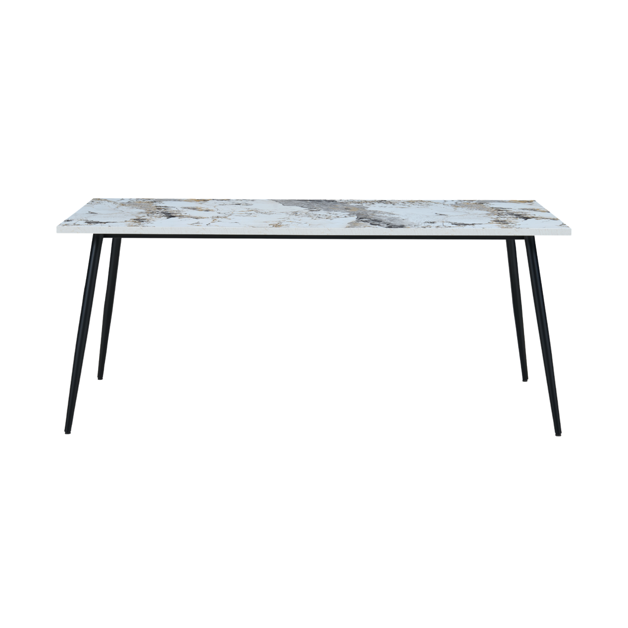 The Horizon Large Dining Table features an elegant marble-effect finish, perfect for spacious, stylish dining areas. Its generous surface comfortably seats up to 8 people. Supported by sturdy, tapered matt black metal legs, this table combines sophistication with practicality. Thoughtfully constructed with durable and eco-friendly materials, it is designed to support sustainable living.