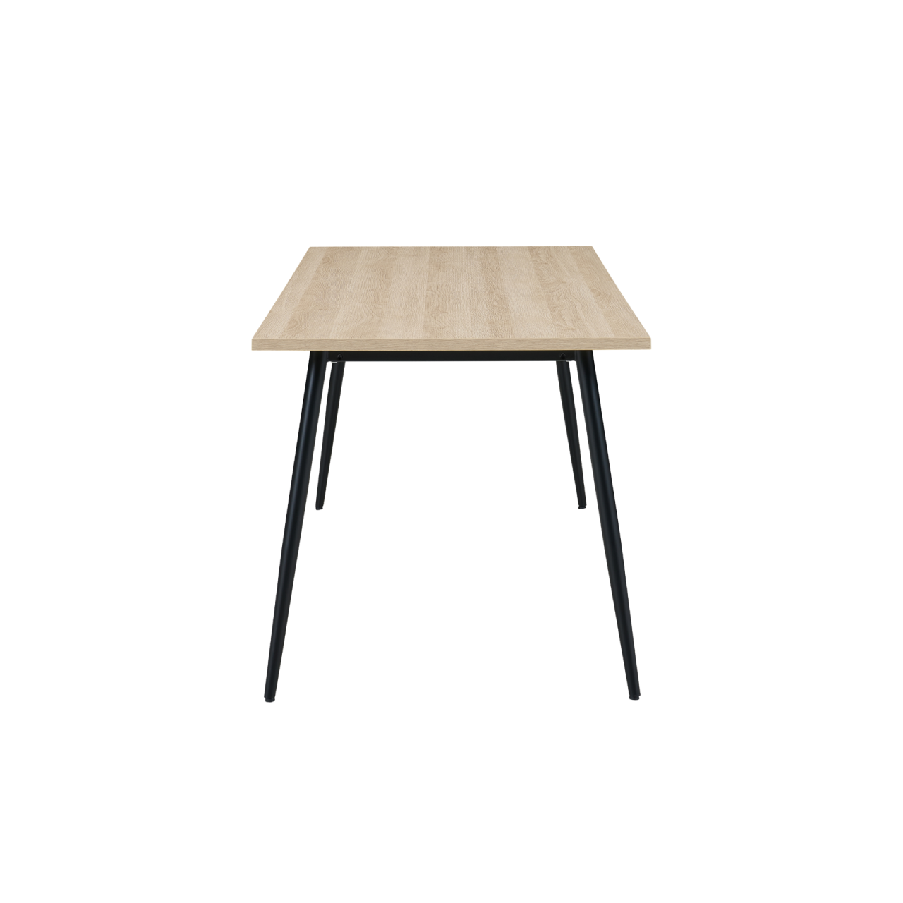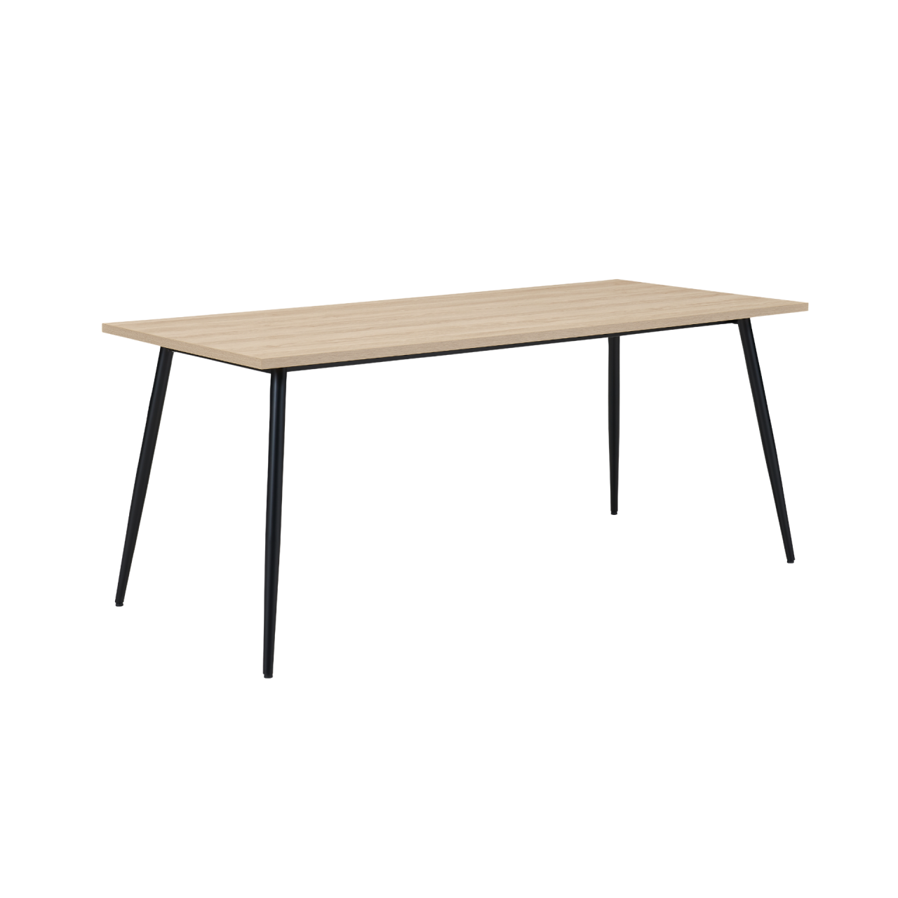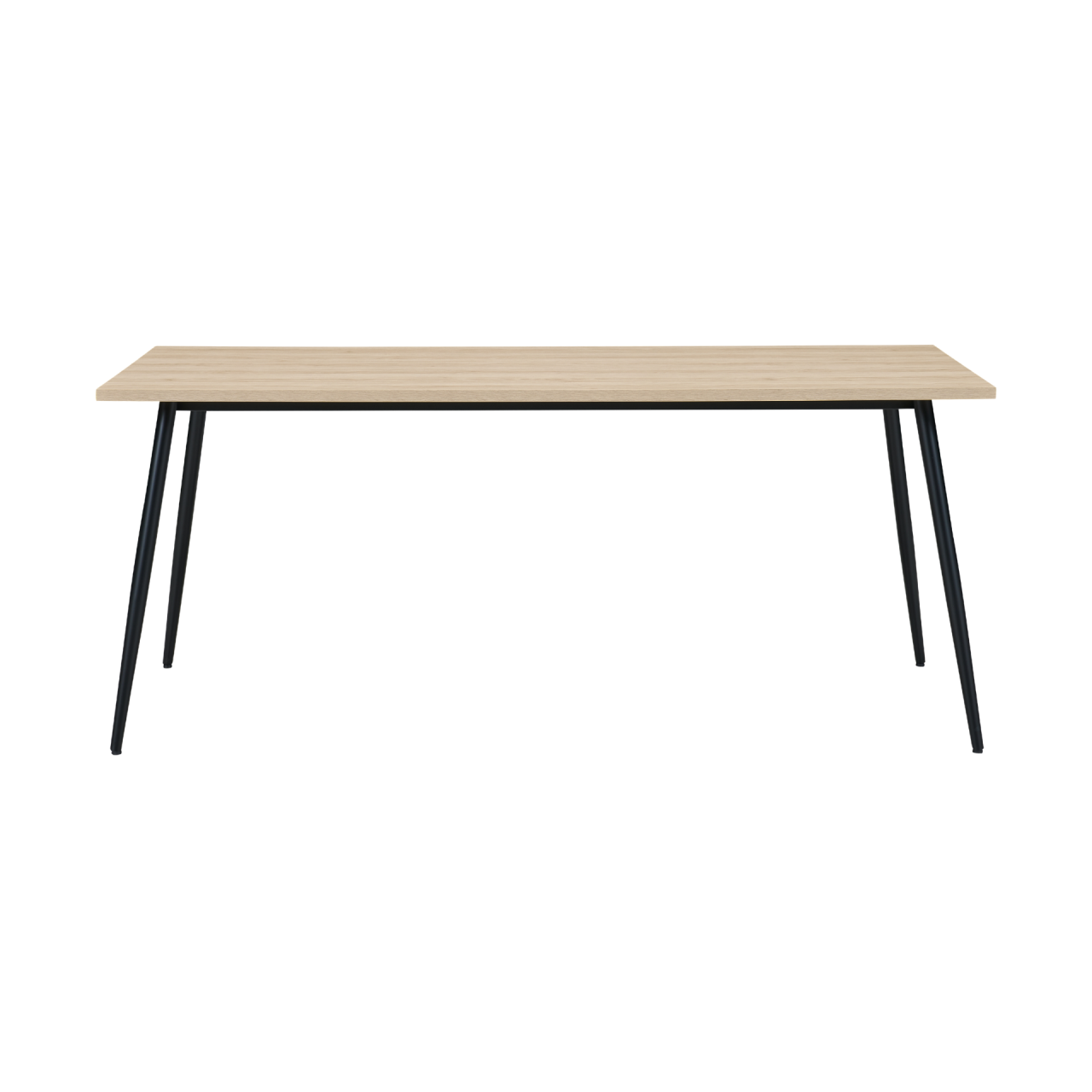 The Horizon Large Dining Table 180cm is designed for spacious dining areas and open-plan living rooms. With a modern woodgrain-effect finish, it comfortably seats up to 8 diners. The rounded, matt black powder-coated metal legs taper outward for extra stability, combining style with practicality. Made with sustainable and long-lasting materials, it is an environmentally responsible choice for modern dining spaces.