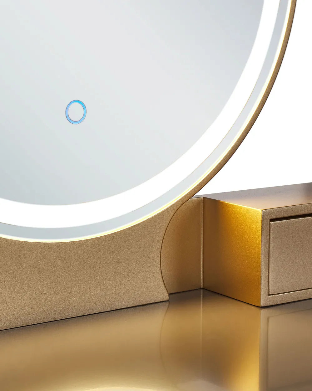 Create a unique beauty corner using a stylish dressing table with a glam look. The piece includes a mirror with an inbuilt LED that will nicely light up your face in three available modes, in this way you can perform your make-up routine with precision. 4 capacious drawers can fit not only your cosmetics but also jewellery, as one of the compartments contains an organizer, so you can easily sort your rings, bracelets or earrings. Set yourself comfortably on a stool with an elegant seat that beautifully matches the design of the table and enjoy your daily routine.