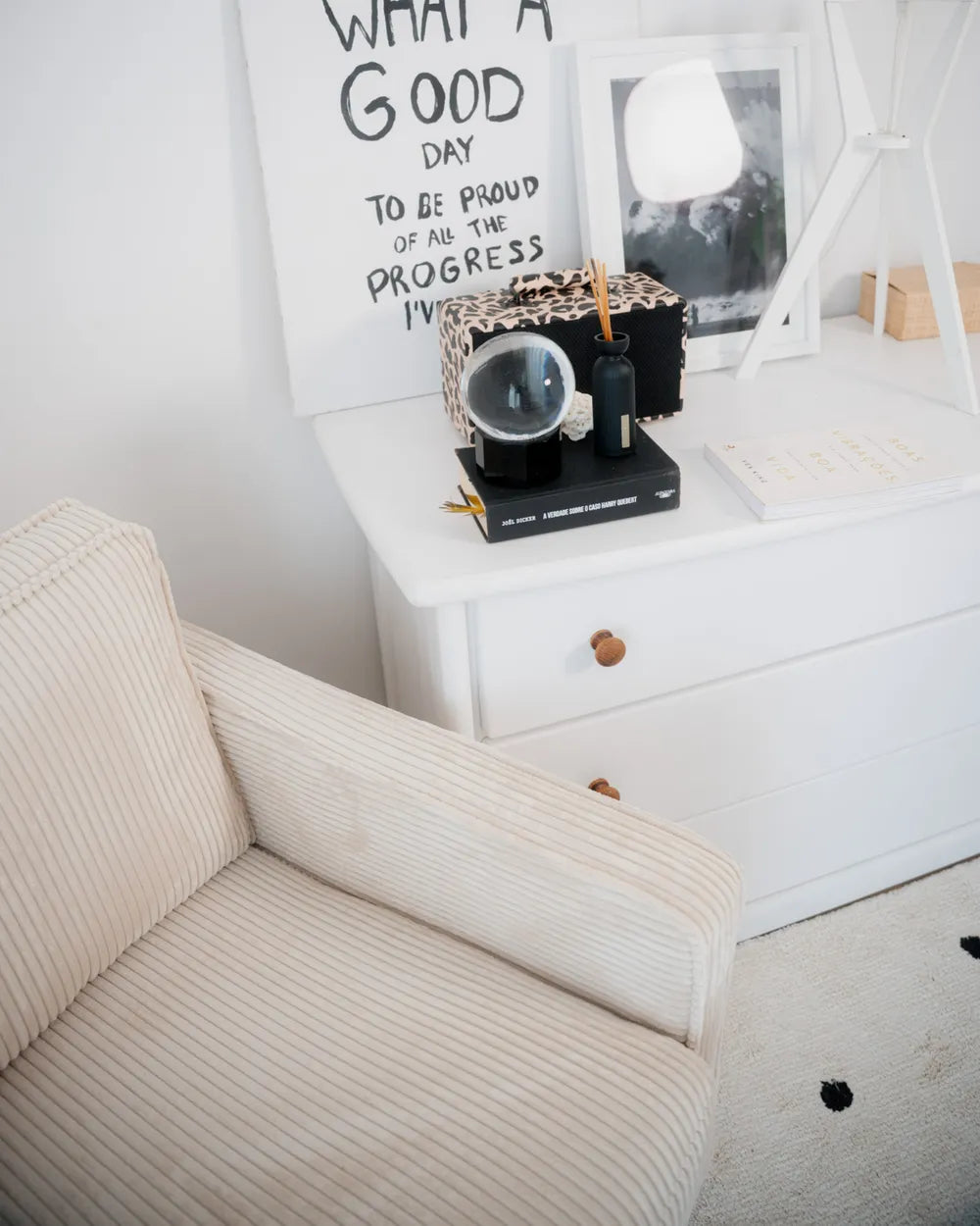 This armchair features a robust frame, standing stable on the stainless steel legs with elegant black finish. Thanks to the corduroy upholstery, the chair looks unique and is a fine addition to the retro-inspired interiors. Granted its neat design, the armchair makes a perfect fit for every living room, bedroom as it will ensure comfortable seating for you and your guests.