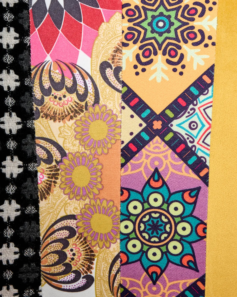This accent chair charms with its striking patchwork print and soft-to-the-touch upholstery. The piece will enliven the look of any living room or bedroom and will be an excellent addition to a children's room. Black metal legs provide stability while the thickly padded seat guarantees comfortable sitting place.