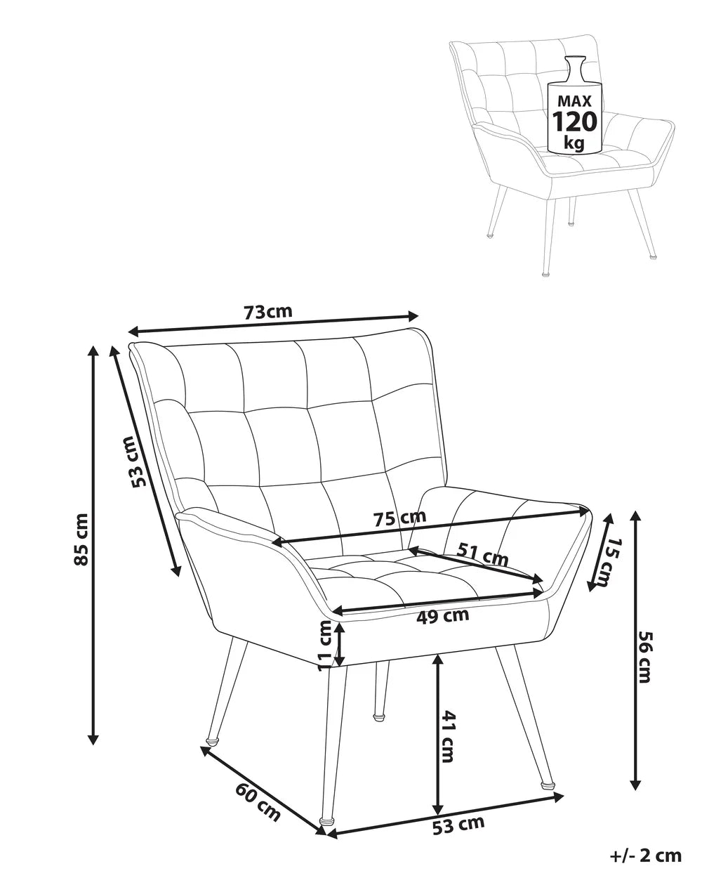 This stylish wide armchair adds retro-inspired charm to any living room. Upholstered in water-repellent fabric with a quilted design, it combines comfort and durability. The sturdy black metal legs provide solid support, while the armrests enhance the seating experience for ultimate relaxation.