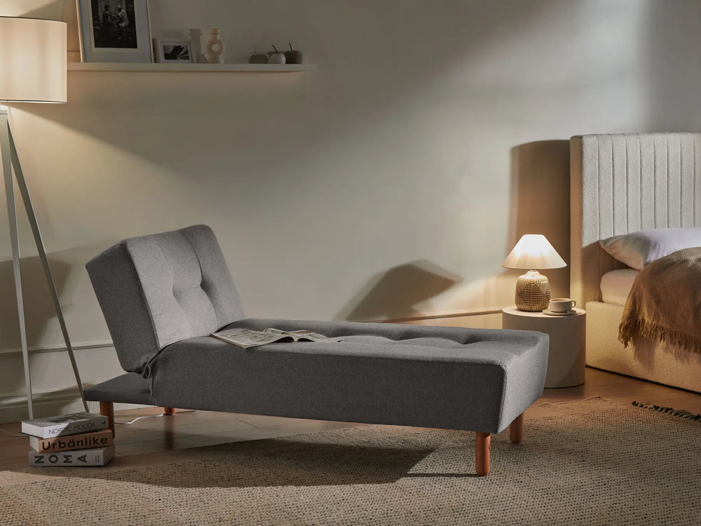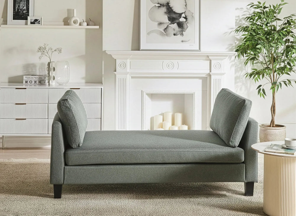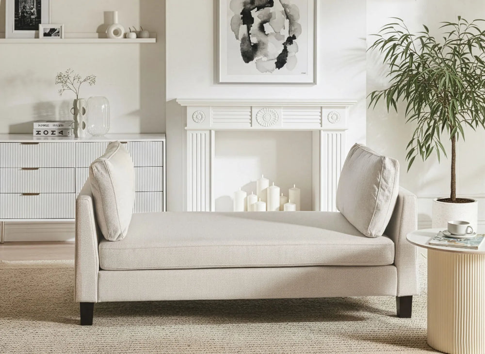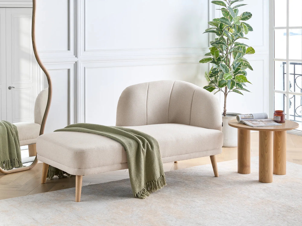 Pair your chaise with a side table for books and essentials, then add a floor lamp to create a cosy reading spot. A rug helps define the seating zone and makes the layout feel intentional. For a coordinated look, match your chaise with complementary pieces such as fabric sofas, corner sofas, armchairs, coffee tables, console tables, TV units and sideboards.