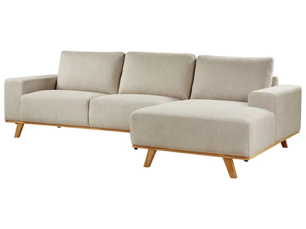 This upholstered couch is going to make a huge difference in your living space - it will elevate the room's decor with a modern vibe, as well as offer you plenty of space to relax and unwind. Crafted out of durable materials, the piece is very cosy and soft, while remaining durable and stable. The sofa offers thickly padded seats and large backrests cushions, which makes it comfortable to sit on. Classic, beige colour, combined with light wooden legs, make it stand out and fit a variety of modern interior decor styles.