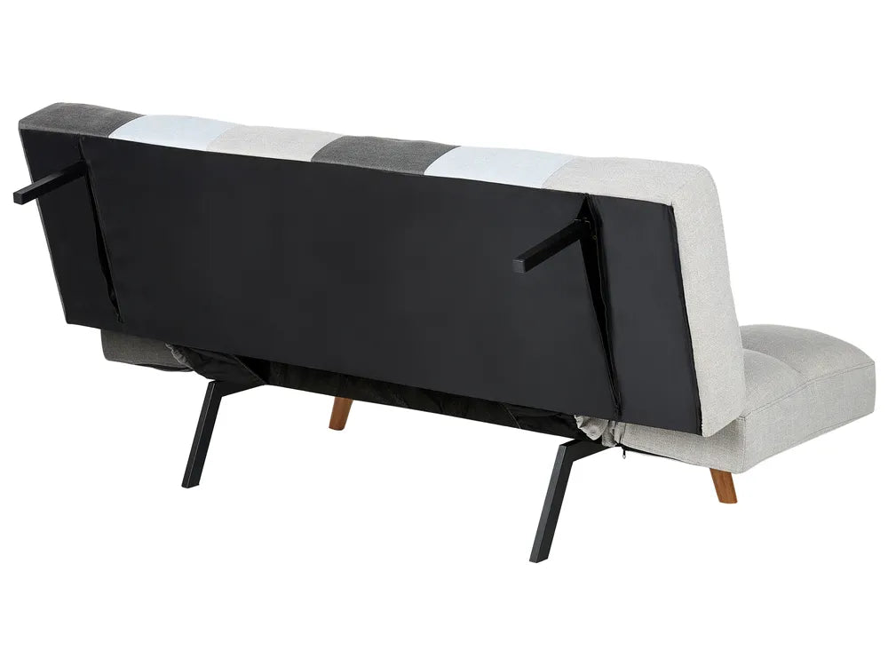 Created for functionality, this modern sofa is fully adaptable to your needs. The armrests recline in 3 stages, allowing for comfy sitting or napping positions. With the adjustable backrest, you can easily go for a semi-reclined position, while the click-clack mechanism allows quick conversion into a single bed. Generous foam padding, and tailoring in square quilted upholstery is highlighted by slim metal legs in wood-like finish.