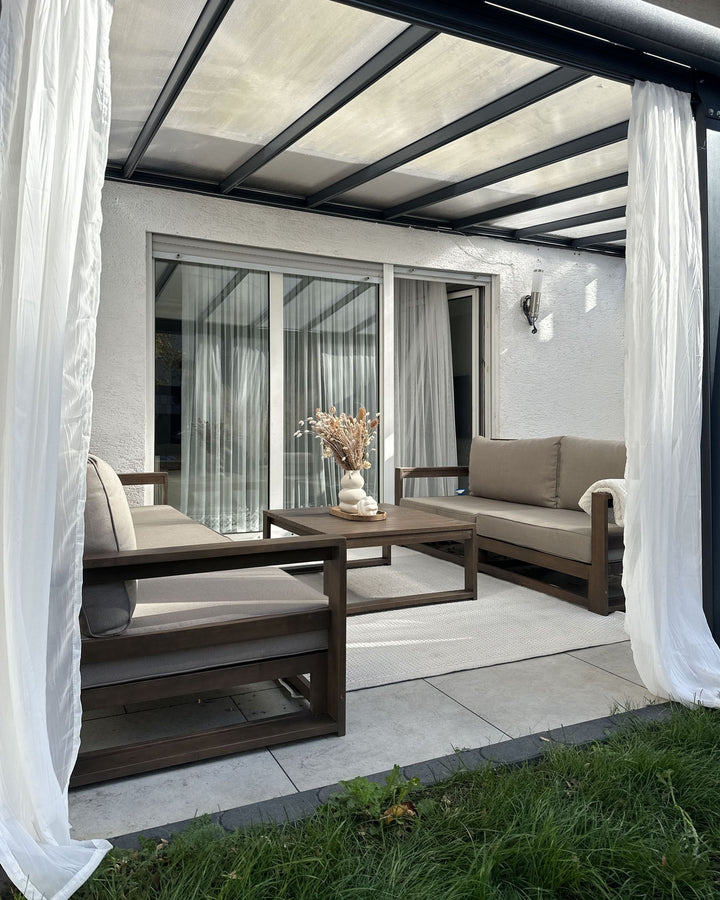 Acacia Wood: 1. Clean with a mild cleaner and a soft cloth in the direction of the grain. Wipe dry immediately after cleaning.2. Furniture with oil finish should be re-oiled before using and after the season before storing it, especially in damp climate.3. During off-season and difficult weather conditions use a protective cover or store the product inside.