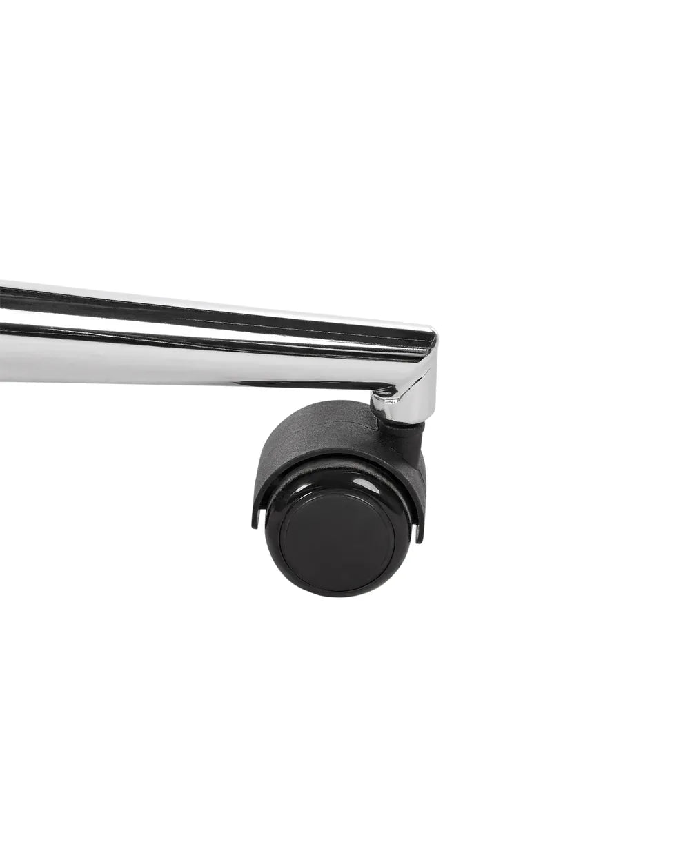 Sit back comfortably while working at your desk in this stylish chair that adds a timeless touch to any space. The seat is upholstered in faux leather with interesting stitching that gives the product elegance and class. It is also wide and has profiled armrests, ensuring high user comfort. A stable metal base with a classic chrome finish, placed on wheels, allows for easy height adjustment.