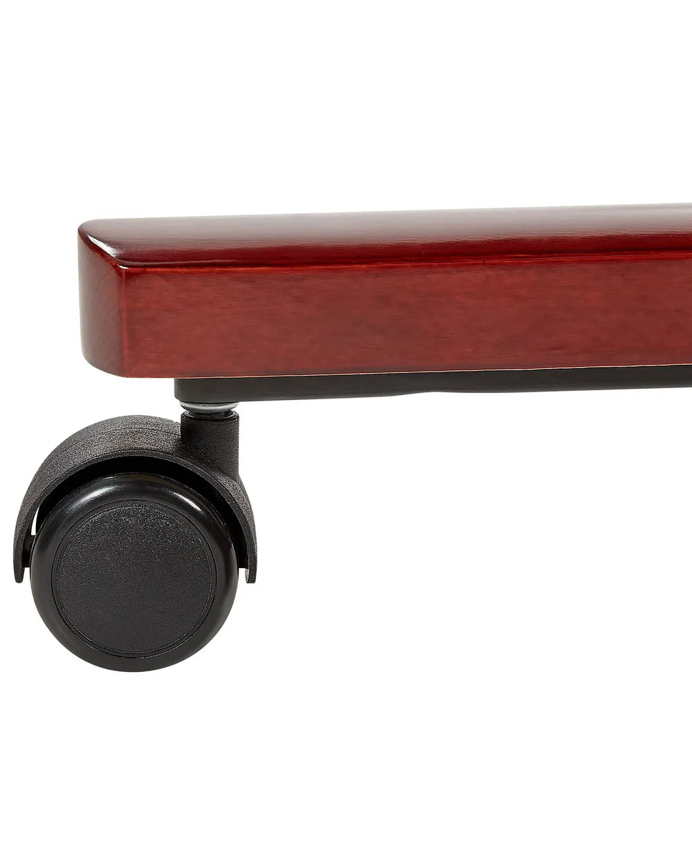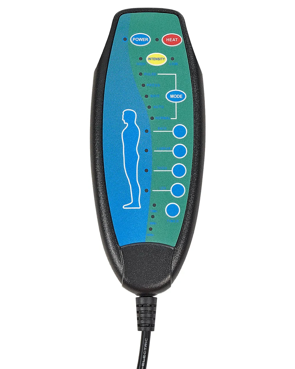 A comfortable office chair. The ergonomic design supports good body posture, and comfortable armrests and a fitted headrest help to release the tension from the nape and shoulders. An inbuilt gas lift allows for smooth adjustment of the seat height. The attached remote control allows you to choose between 9 settings and 3 massage intensity modes as well as heat up the seat. 4 vibrating points are situated in the lumbar area and on the upper back. The seat and backrest are covered in genuine leather in a butter yellow shade, which is perfectly complemented by the wooden base with 5 nylon castors.