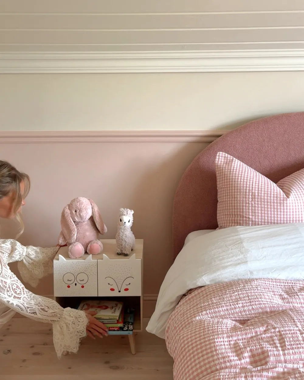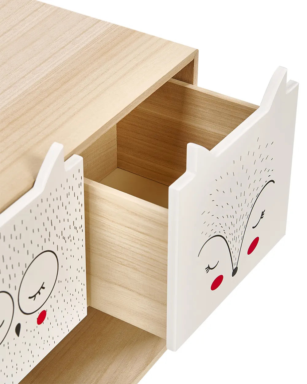 Add a touch of whimsy to your child's bedroom with this charming bedside table. Featuring playful, animal-themed drawers and a natural wood finish, this piece combines a fun design with practical storage. Perfect for keeping bedtime essentials within reach, it’s a delightful and functional addition to any cosy sleep space.
