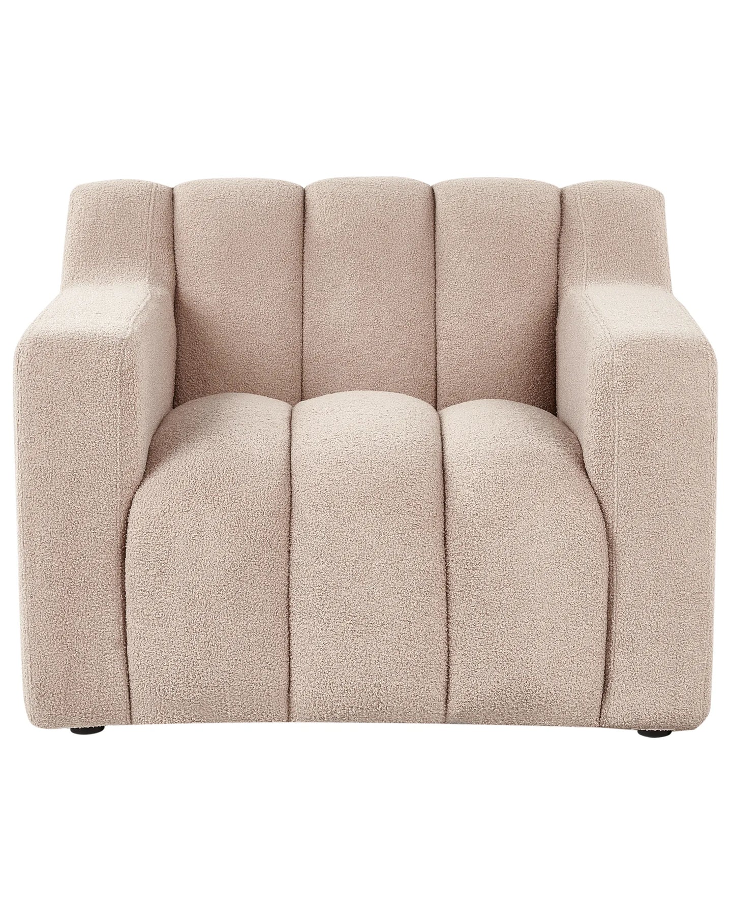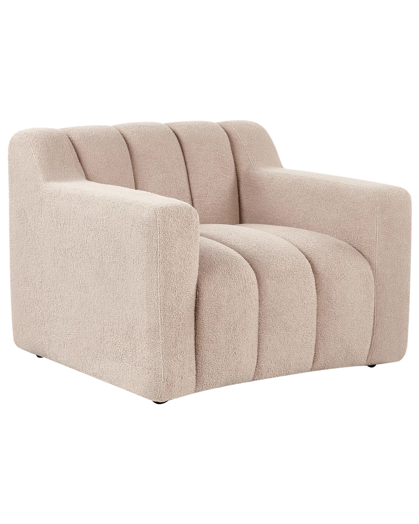 This robust bouclé armchair brings a touch of modern elegance to any room with its soft, textured fabric and sleek curves. Its spacious, deep seat and sturdy frame make it incredibly comfortable for long hours of relaxation. Whether you're curling up with a book or adding a statement piece to your space, this accent chair blends style and utility effortlessly.