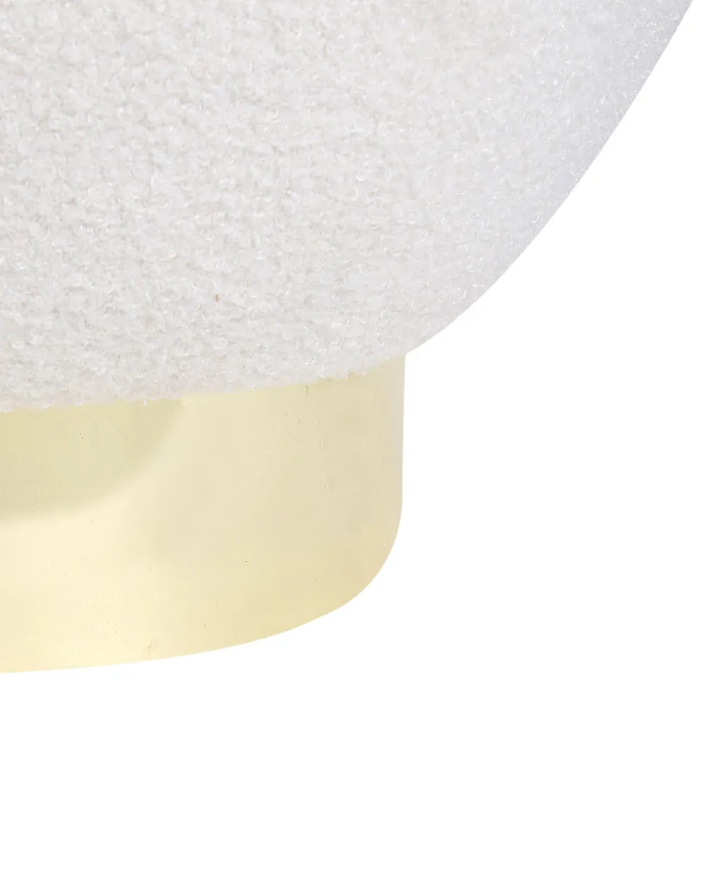 This modern armchair delights with its design. It features a round shape and square, golden base that make the chair a unique, geometric piece of furniture. It is upholstered in bouclé fabric, a soft yet strong material that will easily withstand years of usage without losing on its texture and colour. The golden, square base complements the whole design, adding a glam accent and providing stability to the construction at the same time. Combine this armchair with other geometric furniture and accessories in light tones to create a contemporary interior.