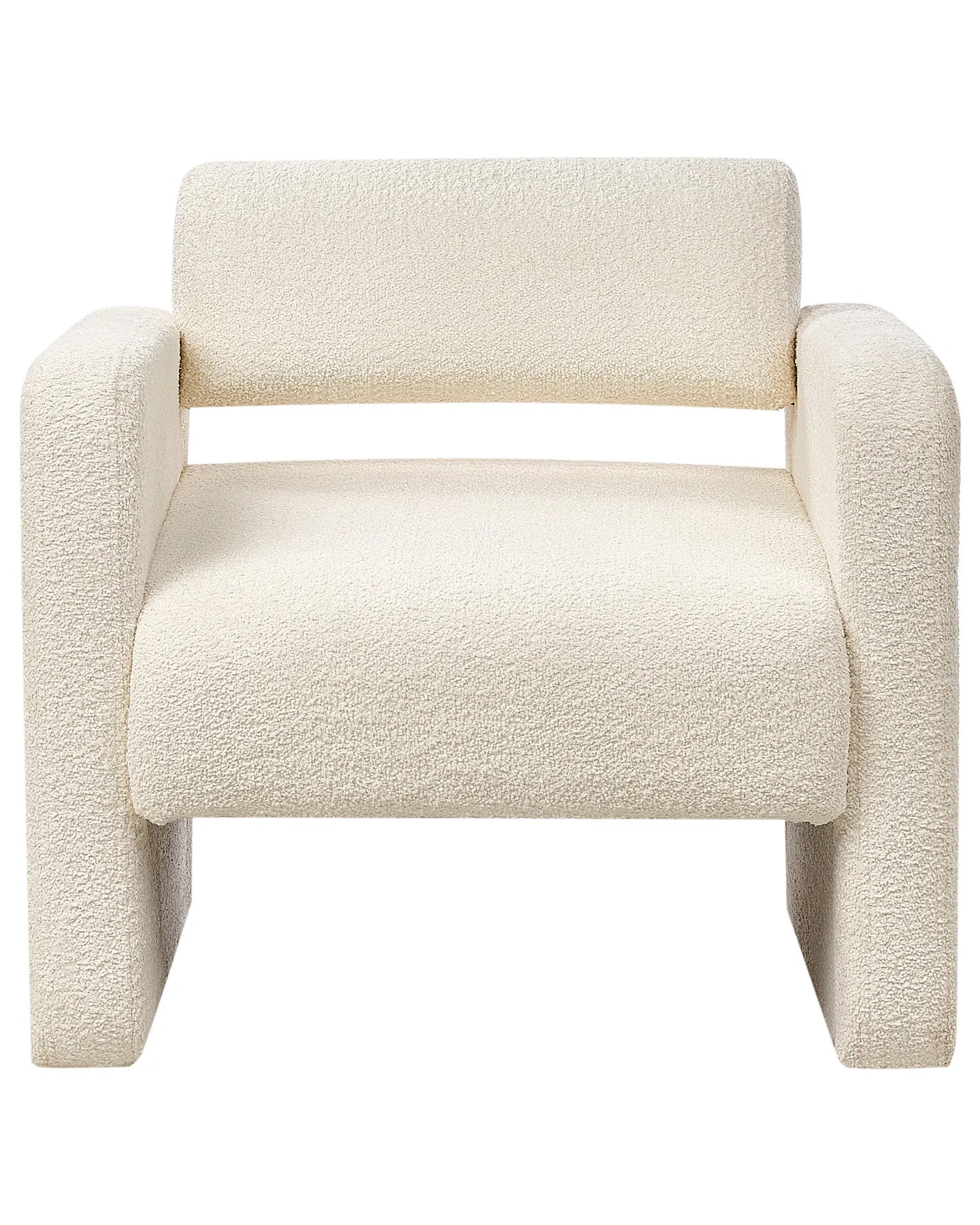 Crafted with soft, plush boucle upholstery, this armchair offers an inviting place to sit. Its retro-inspired design, featuring clean, straight lines and a touch of mid-century modern flair, makes it a stylish addition to any living room. The luxurious boucle fabric adds a sumptuous feel, while the armchair's comfortable design invites relaxation and unwinding. Whether as a complementary addition to a sofa set or as a striking standalone piece, this armchair makes a beautiful choice.