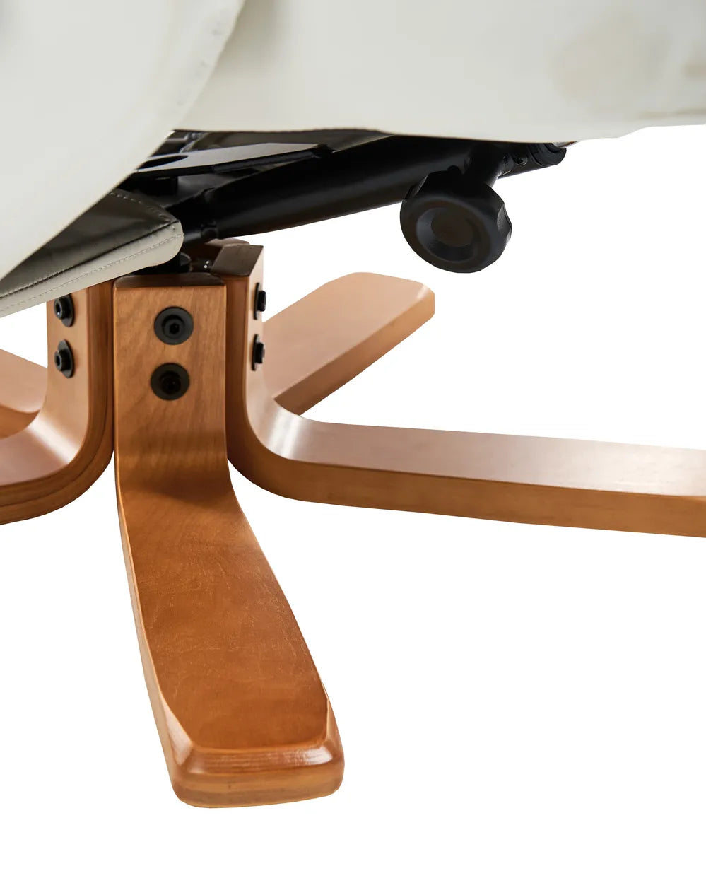 Enjoy the full comfort of an ergonomically-shaped backrest and armrests covered in soft faux leather. This piece not only provides great support, but it also ensures a good body posture. Its reclining mechanism takes the pressure off the spine while a comfortable footrest and heating function help to fully relax. The design features an attached remote control that allows choosing between 5 settings and 2 massage intensity modes. 3 vibrating points are situated in the lumbar and thigh area, as well as on the upper back. Its 360° swivel base is crafted from durable plywood.