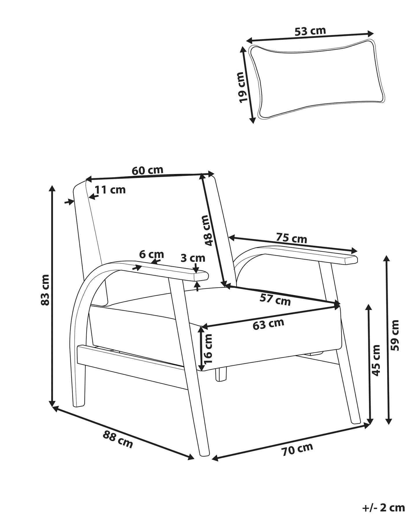 Comes with 1 x Armchair, 1 x Cushion