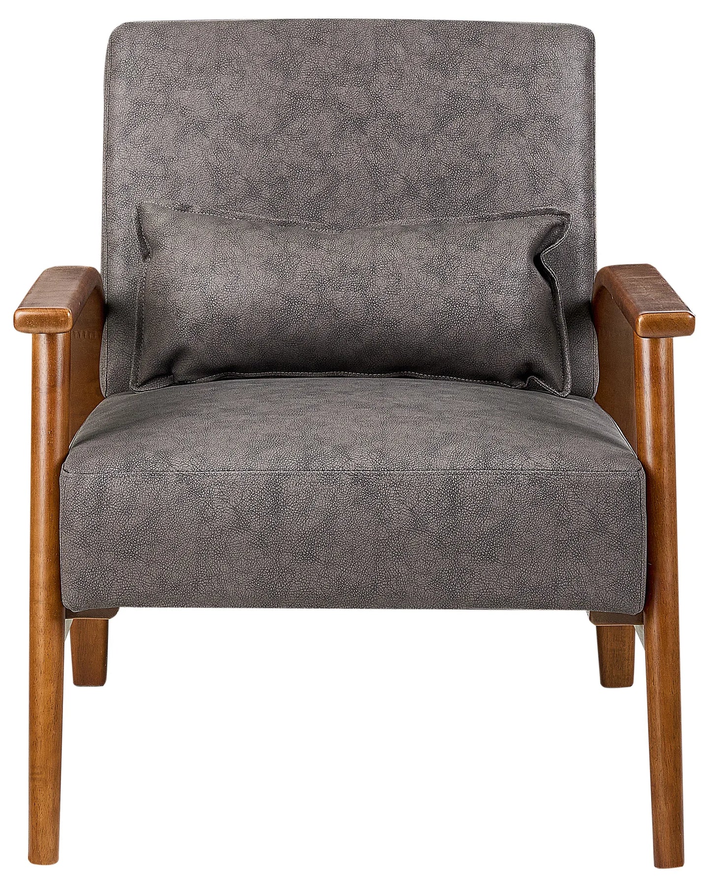Refresh your home decor with this armchair and add a touch of retro flair to your living room or bedroom. Upholstered in stylish and durable faux leather, the piece adds elegance to any interior. Equipped with additional cushion for extra comfort, this armchair is an easy-to-maintain relaxation spot. The chair will serve as an attractive focal point in your home.