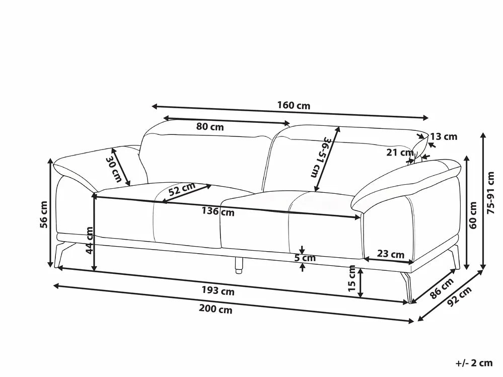 Introduce refined comfort to your home with this modern 3-seater sofa. Upholstered in eco-leather and supported by stylish metal legs, it offers both elegance and everyday durability. Designed for personalized relaxation, it features an adjustable headrest to ensure optimal comfort while reading, watching TV or just unwinding, making it a functional addition to any living room.