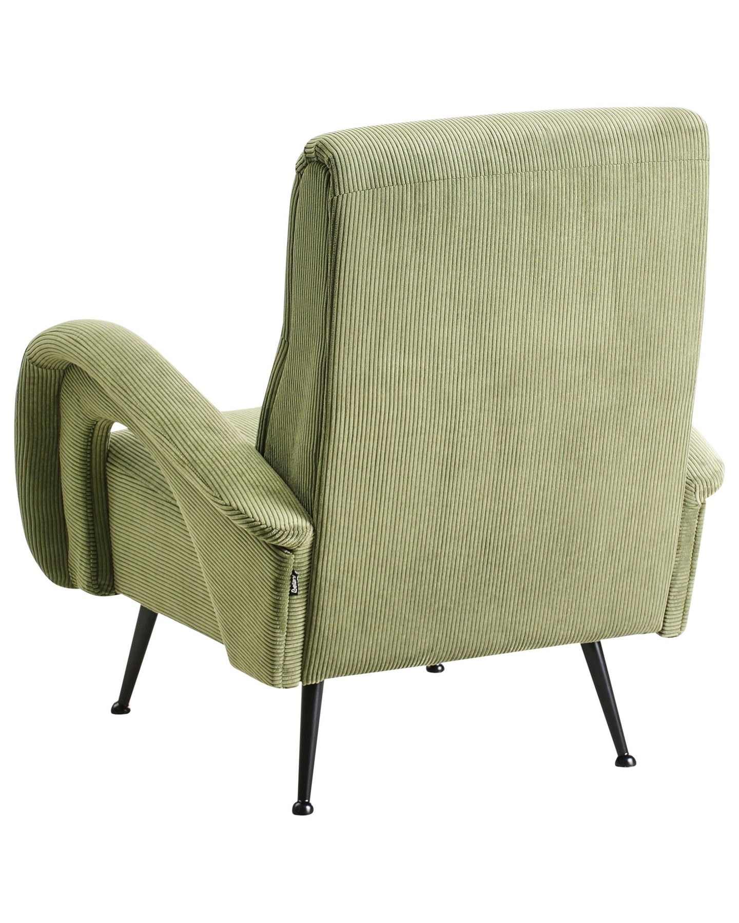 This retro-inspired armchair, adorned with luxurious corduroy upholstery featuring a distinctive ribbed texture, will be the statement piece of any living space. Its fancy armrests exude vintage charm while offering a comfortable seating experience, complemented by a thickly padded, high backrest for added support and relaxation. Elevate your home with this stylish and cosy armchair, seamlessly blending retro aesthetics with modern comfort.