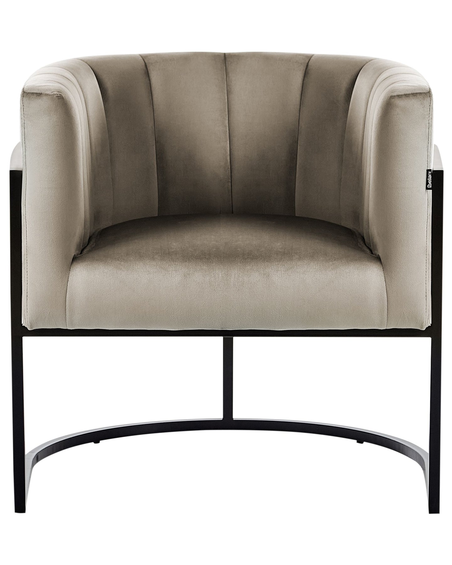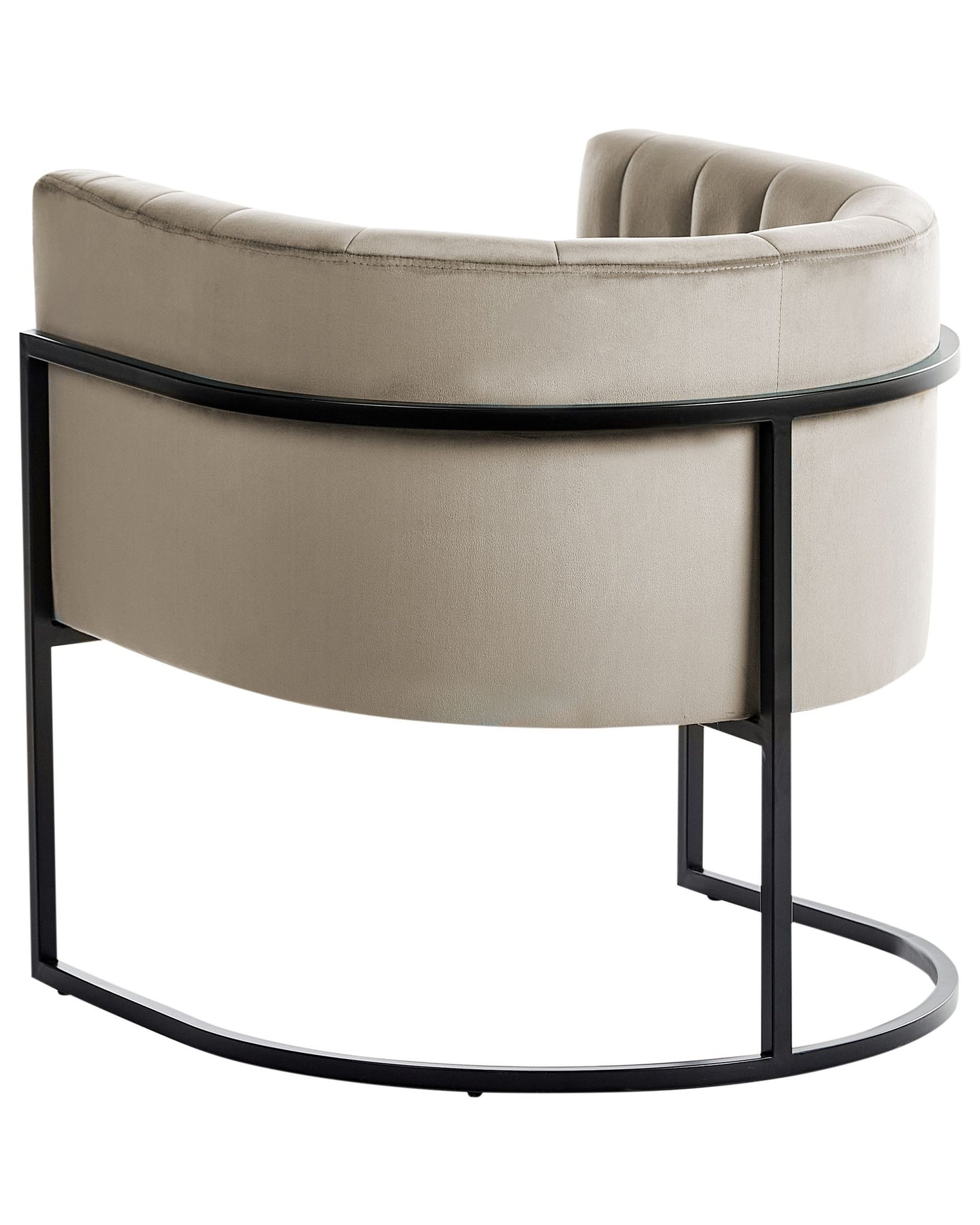 Designed in a clean, simple style, this accent chair blends marvellously with vintage or modern interiors. The armchair features a scalloped back and low backrest and is upholstered in soft-to-the-touch, easy-care velvet fabric in a toned taupe colour. Based on the sturdy metal legs in classic black, the chair is steady yet stylish, providing the old Hollywood glam look.