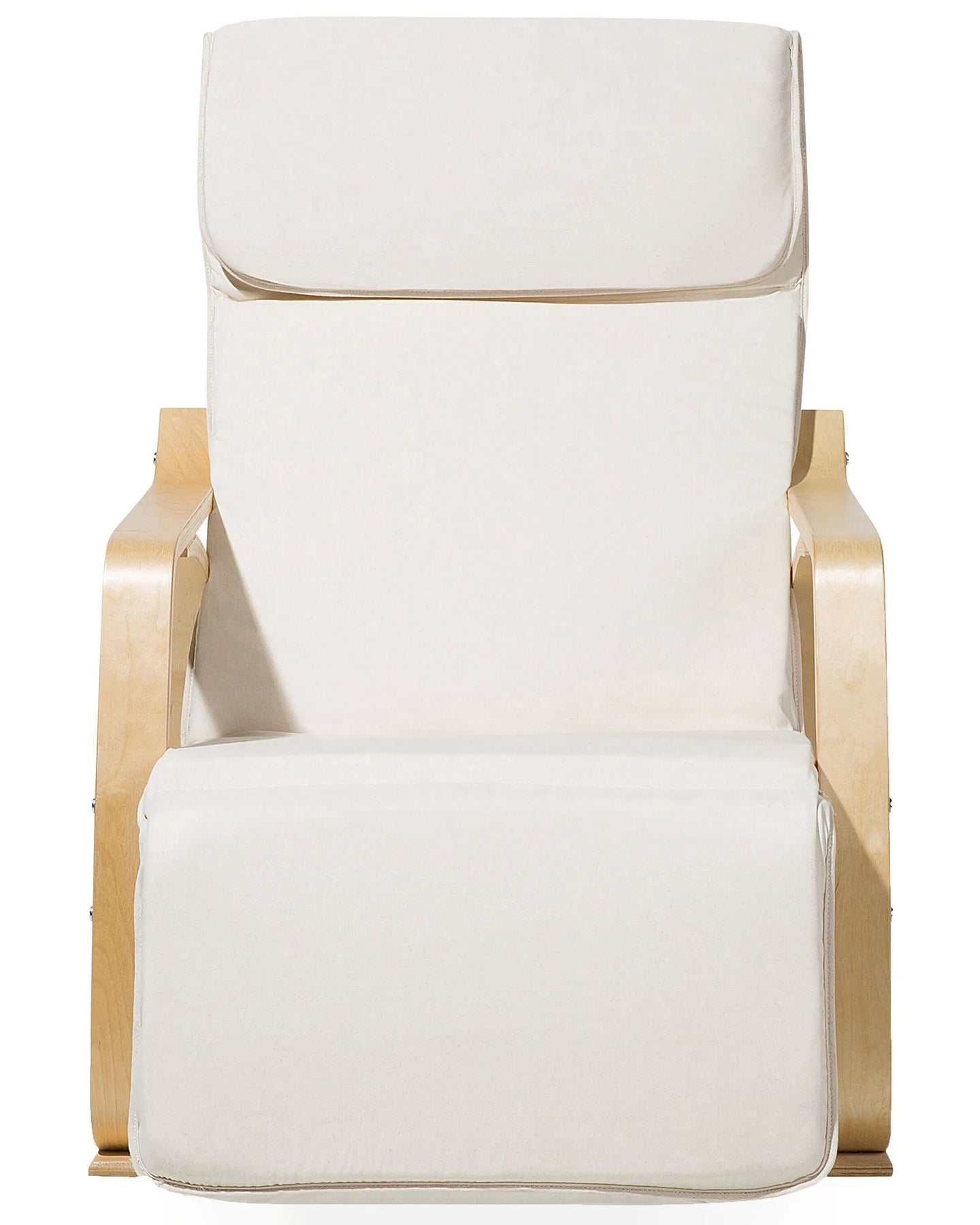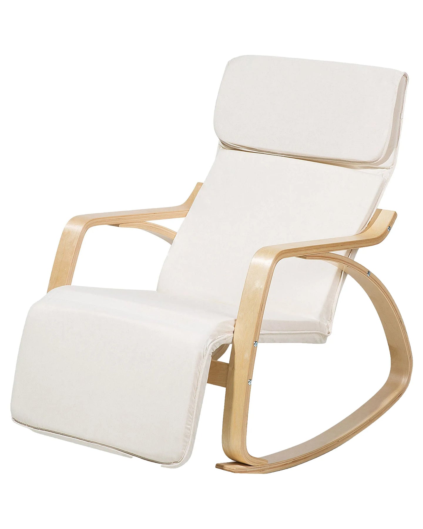 This updated version of a rocking chair features a classic design with a modern touch and the utter sitting comfort thanks to a thickly upholstered seat. Fitted armrests and profiled backrest with a headrest provide total relaxation. The high-quality polyester upholstery in light beige colour blends beautifully with birch wood legs.