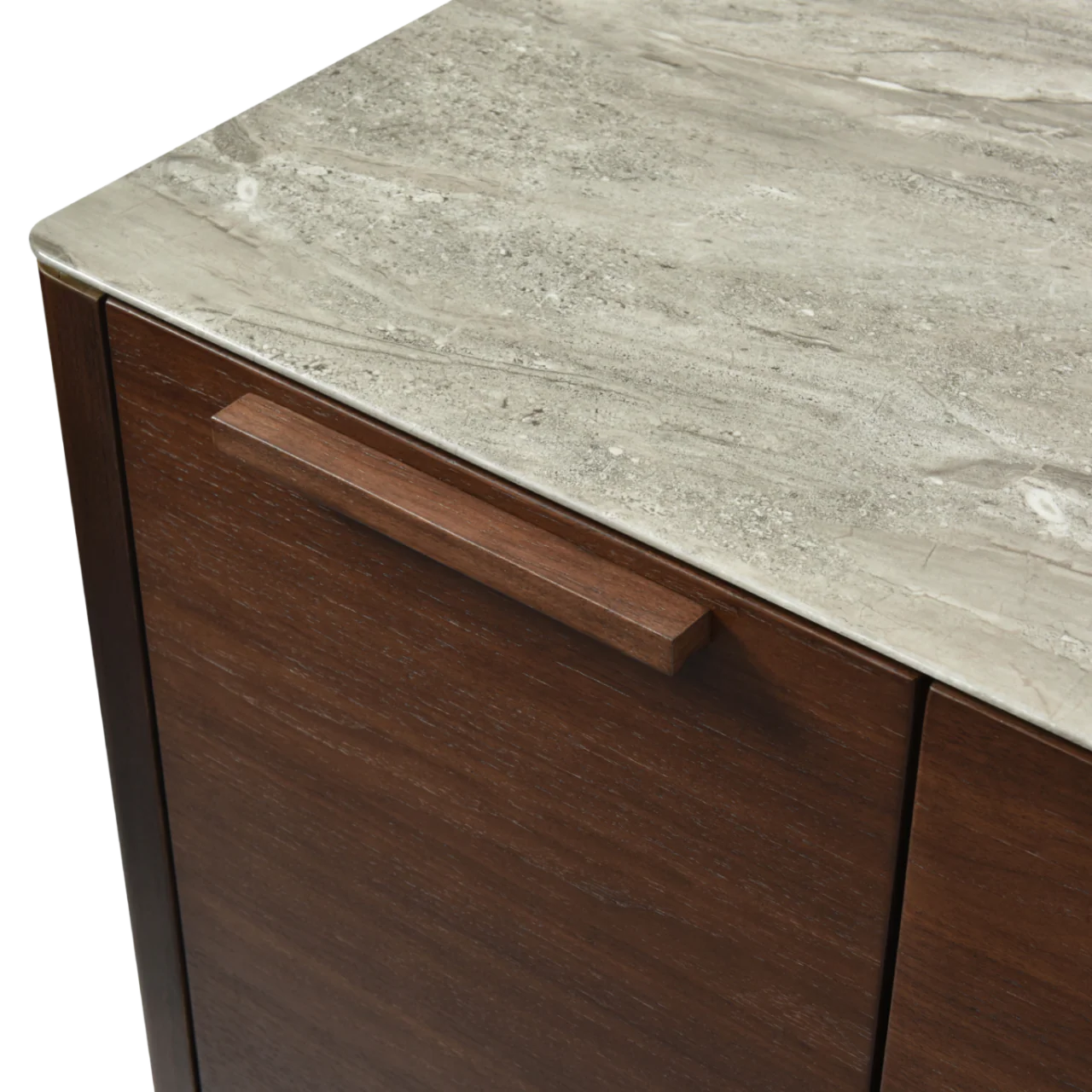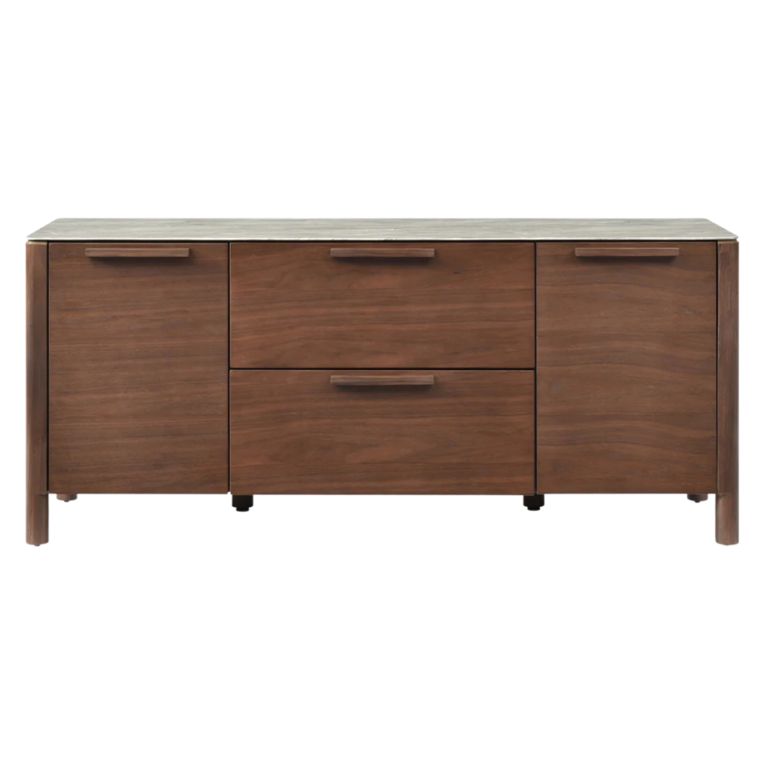 The Willow TV unit comes in a tobacco walnut finish and detailed marbled glass beige top. The unit has two doors and two drawers offering plenty of closed storage space. The drawers have soft close runners and subtle sleek black handles. This beautiful piece will compliment any style of interior and be a focal point to your living room.