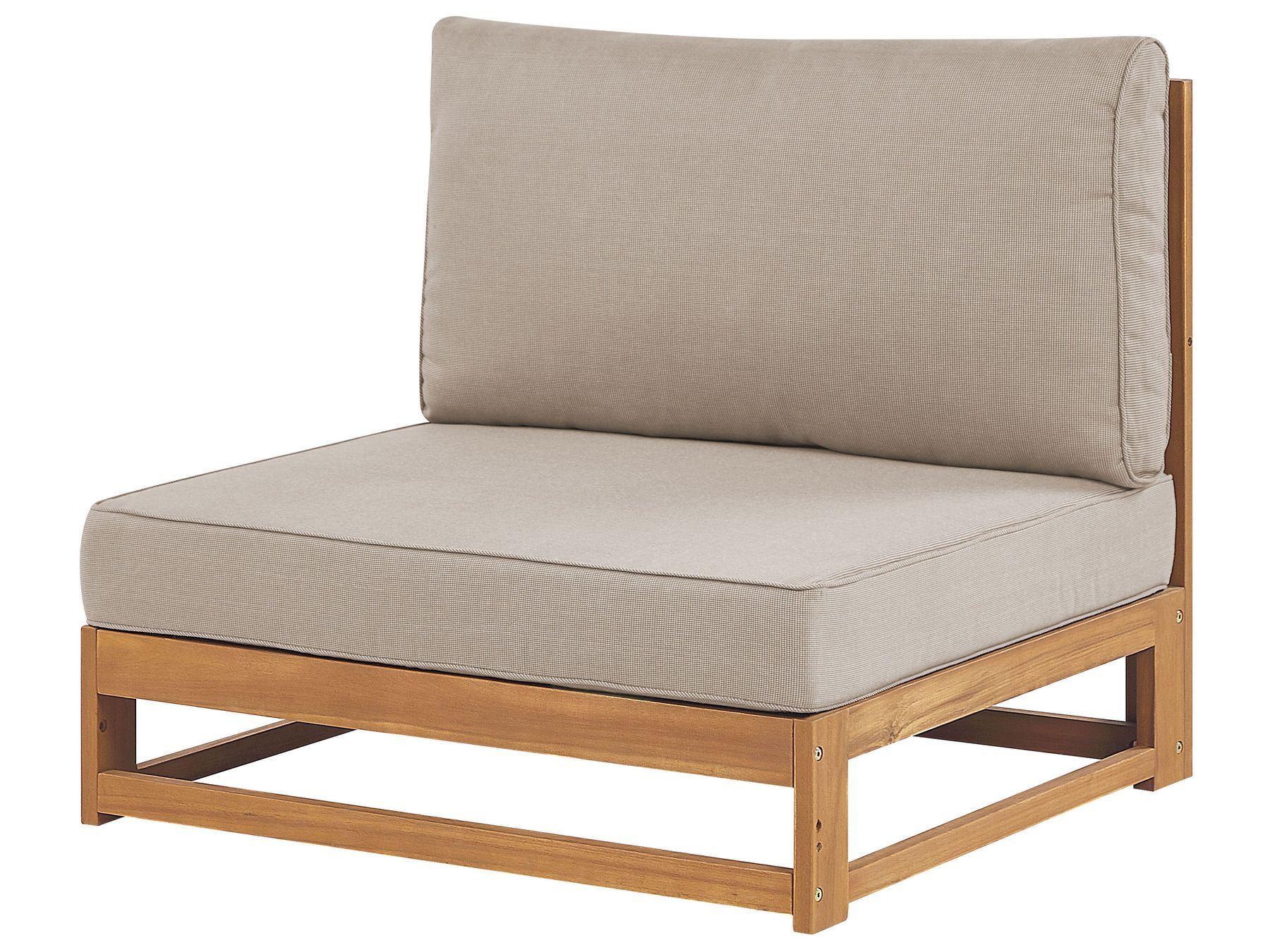 This classic garden sofa set comes with a coffee table and modular elements that can be set together or used as separate seats. Made from acacia in a beautiful, light wood tone, it is perfect for outdoor lounging areas, and it's easy to clean. With the thickly padded seat and backrest cushions, in a taupe shade, combined with a comfortable, low-design frame, this is the perfect focal point for any modern garden or patio.
