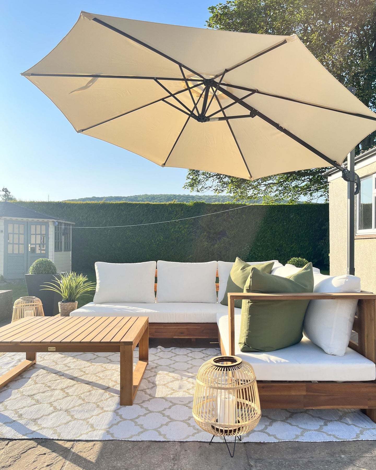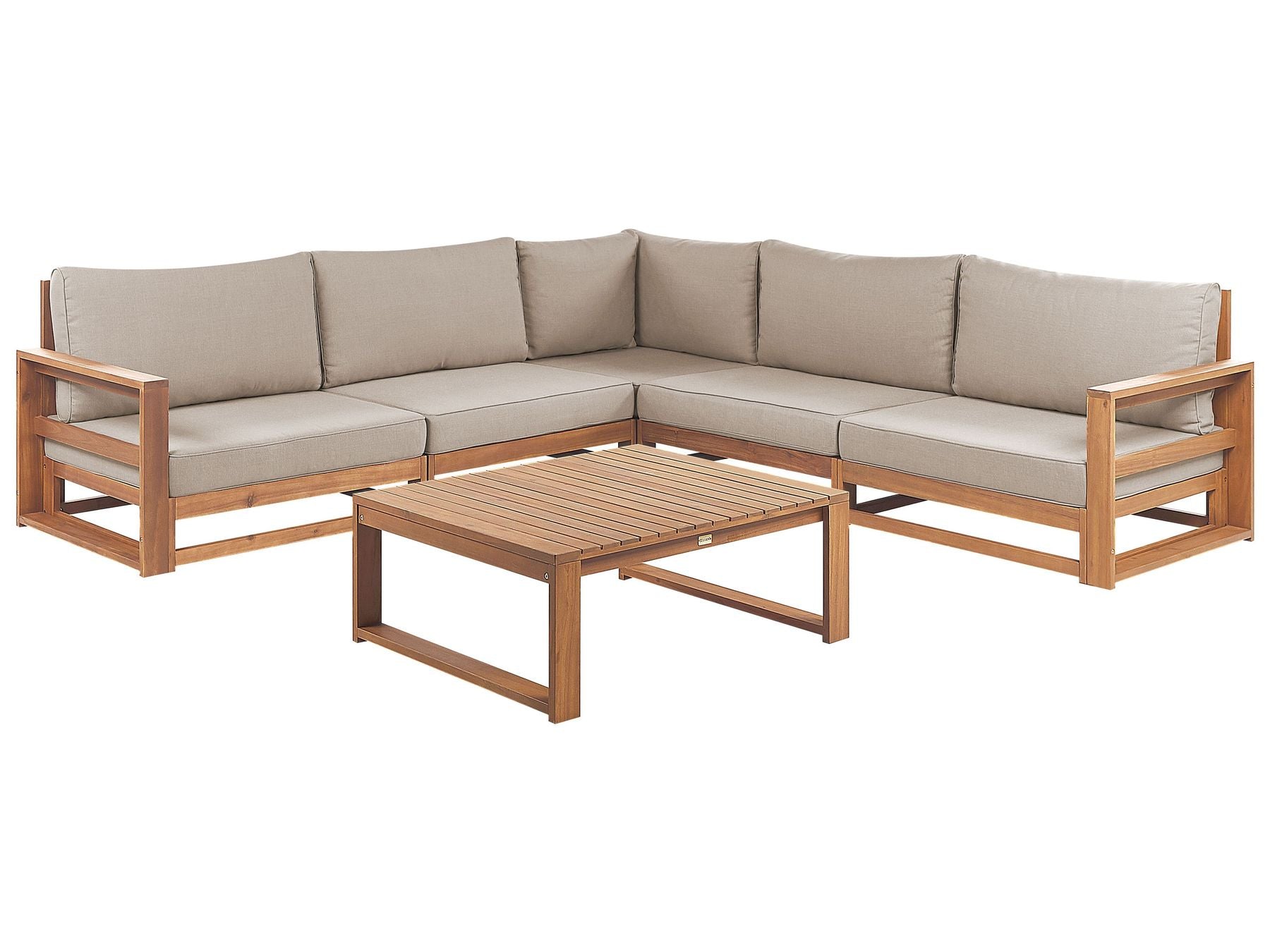 Timor Garden Corner Sofa with Table 5 Seater Certified Acacia Wood Light Brown