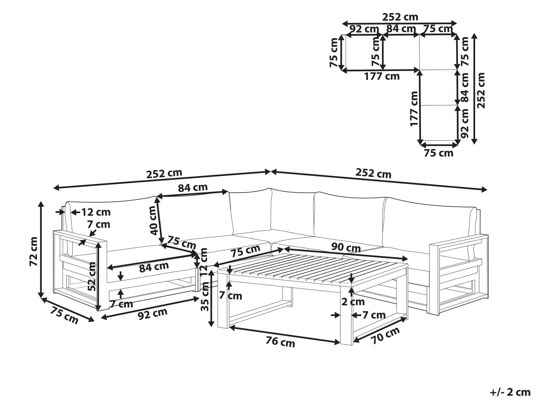 Comes with - 1 x Coffee Table, 1 x Corner Sofa, Cushions Included