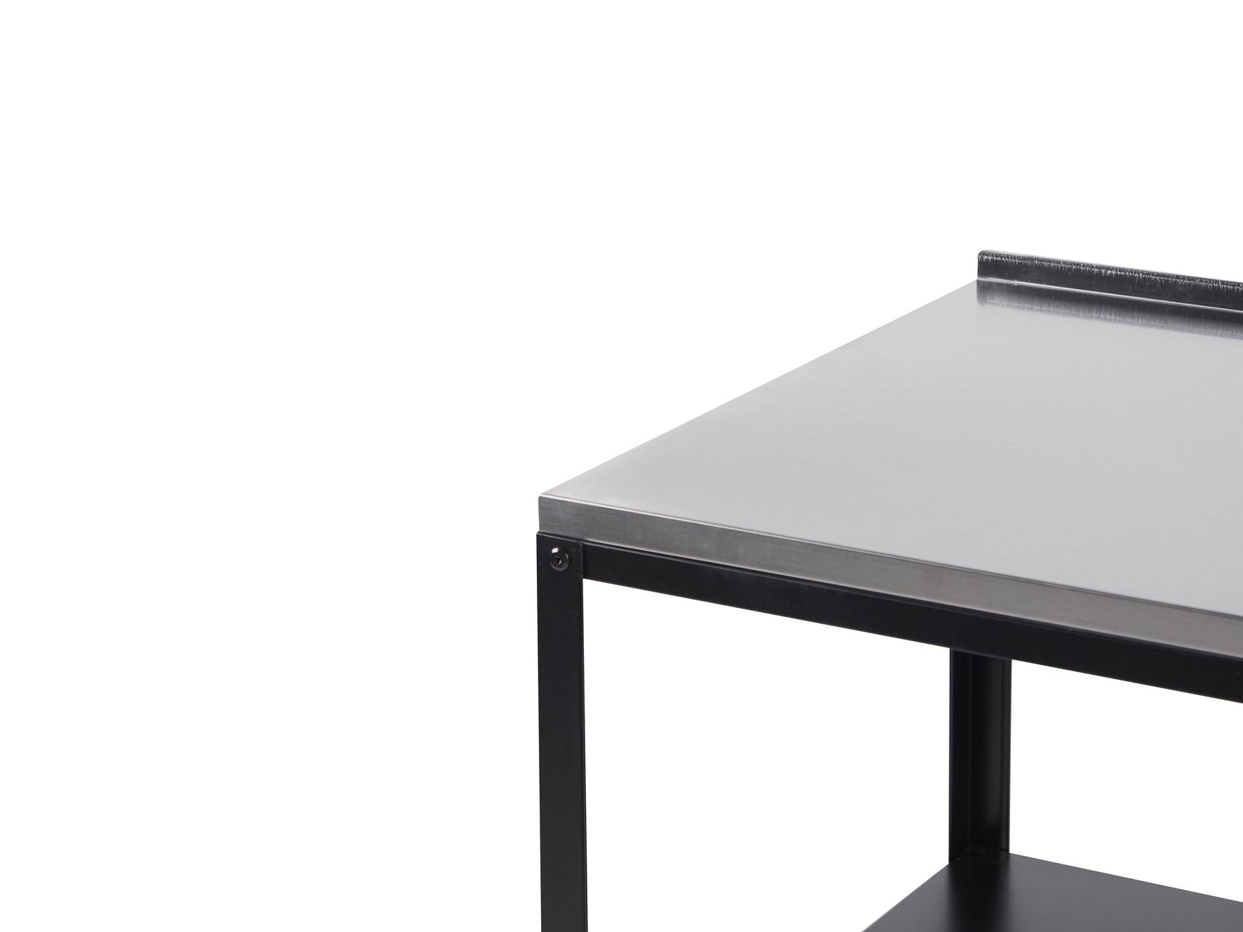 An outdoor kitchen island, designed for utter convenience, features two open shelves for food and kitchen accessories storage. With this piece, you can remain engaged with your guests while preparing meals outdoors, eliminating the need to constantly retreat to your indoor kitchen. Made from stainless steel with powder coating, the furniture is fully prepared for outdoor conditions, ensuring durability. Its practical construction includes a tabletop, perfect for prepping ingredients or using as a grill station, allowing you to relish the joys of outdoor cooking.