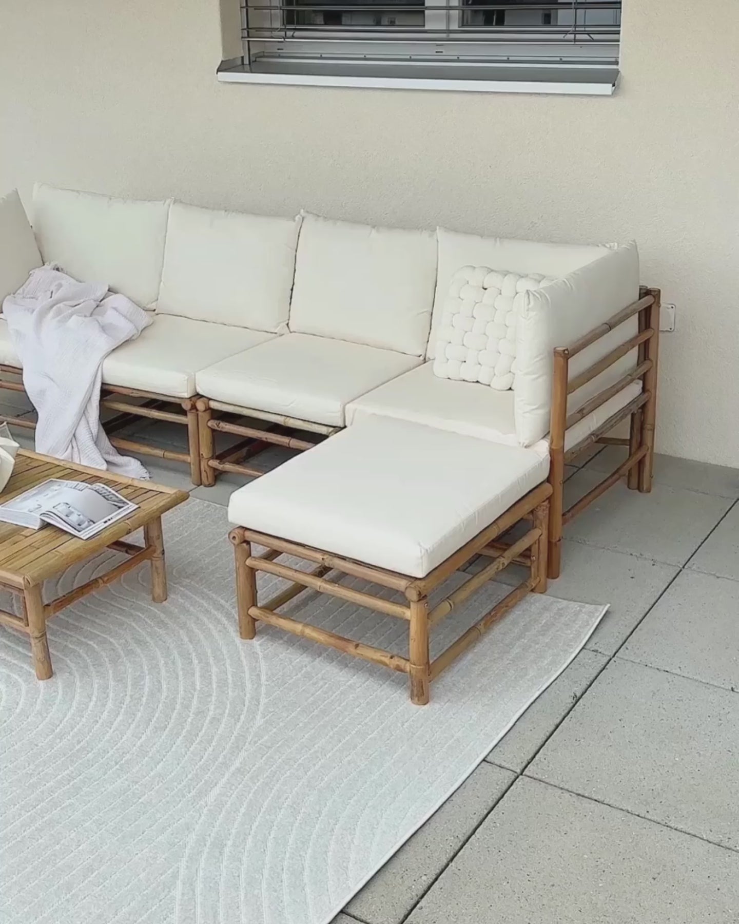 Create your perfect outdoor oasis with this bamboo modular set. Embrace boho vibes with this versatile piece featuring comfy seat cushions with removable covers. Rearrange effortlessly to suit your space. Ideal for gardens and patios, this modular design invites relaxation and style. Upgrade your outdoor living with natural elegance.